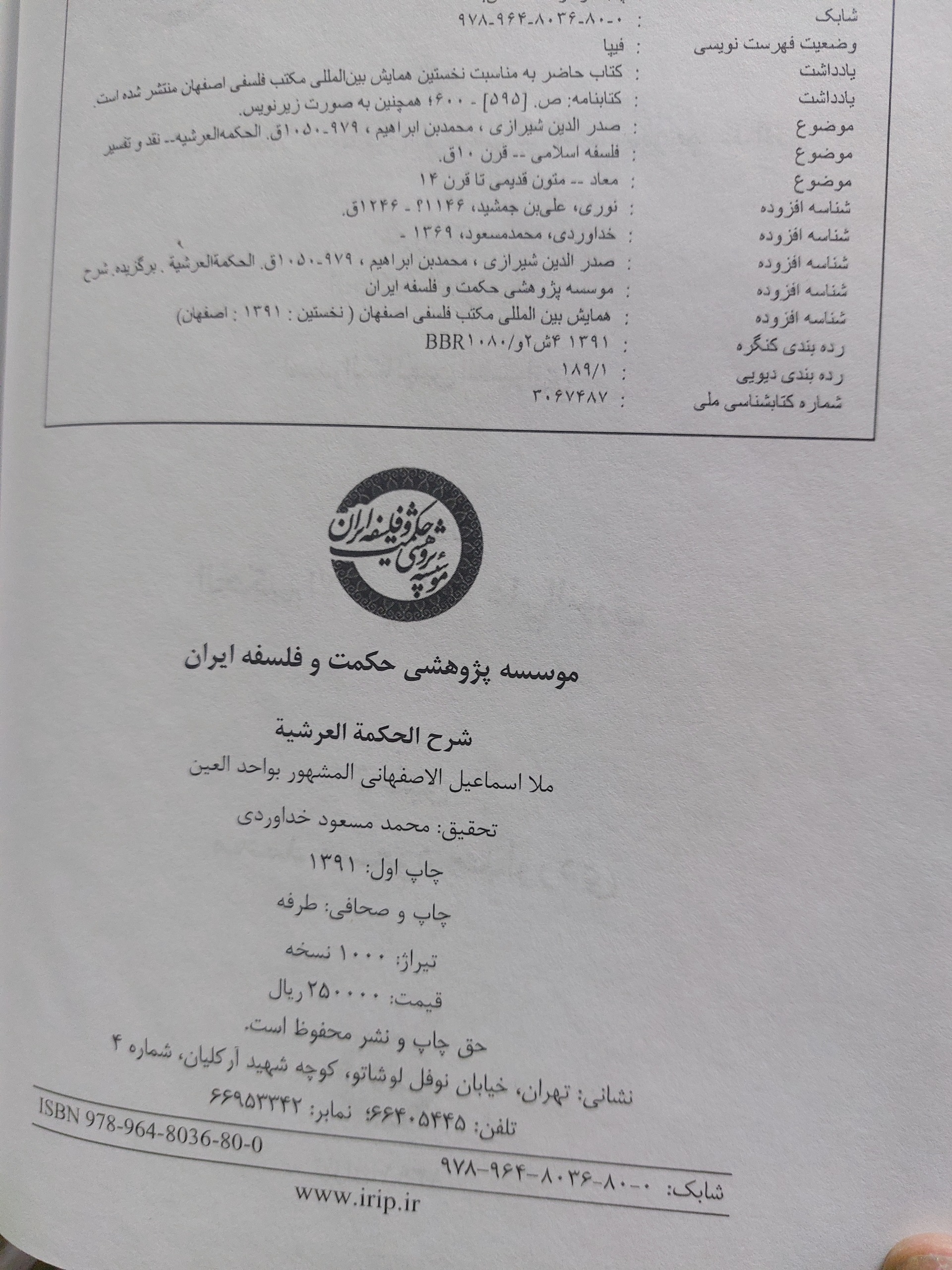شرح الحکمه العرشیه ملاصدرا (ملا علی النوری)