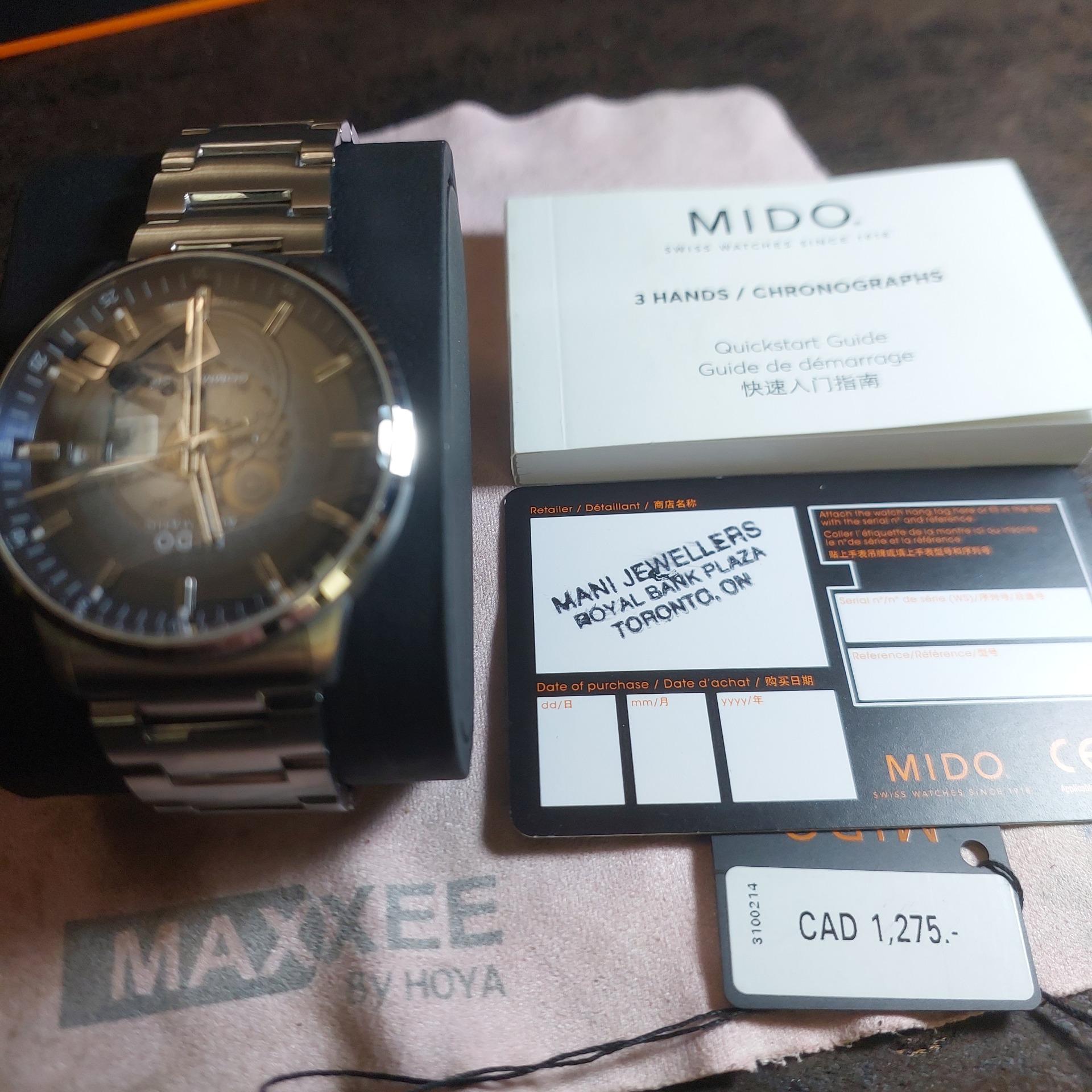سلام دوستان ساعت مچی  سویسی میدو  اصل و اصل آکبند و نو که حتی یکبار هم استفاده نشده و با جعبه که یکی از بهترین مارکهای ساعت مچی دنیا  است، شیشه یاقوت کامل و پشت نمایان دارای سریال قابل چک در سایت، دارای چندین جعبه تو در تو و دفترچه و کاغذ خرید 1470 دلار  قیمت اول سرچ کن بعد مقایسه کن بنده سی و پنج  درصد پایین زدم.  به دلیل حساسیت کالا عودت نداریم