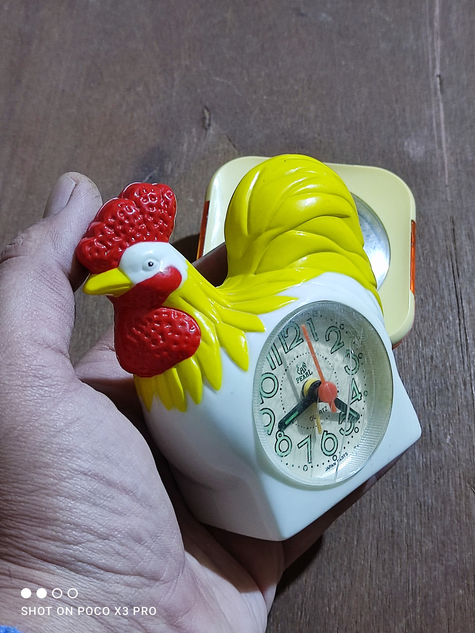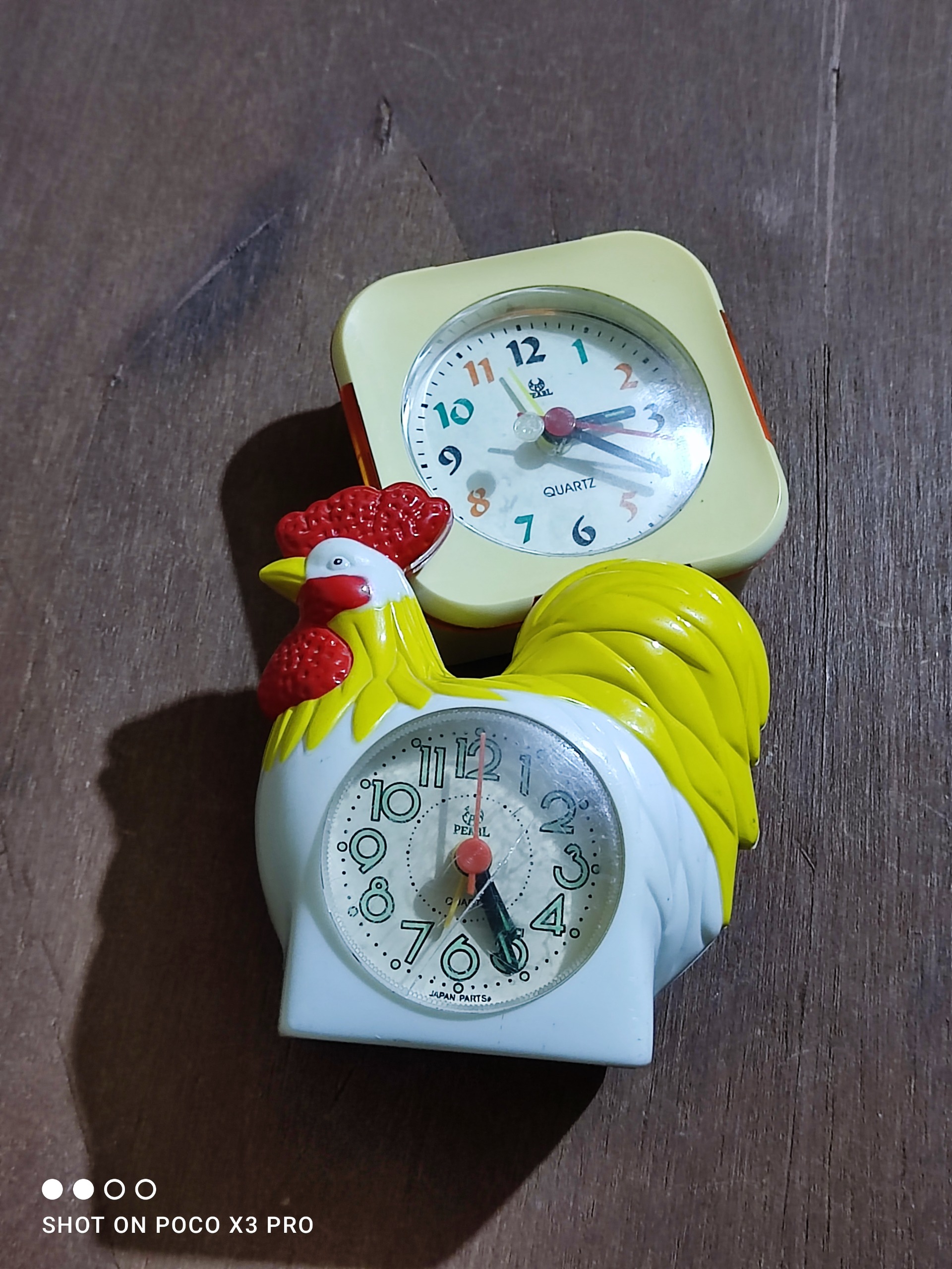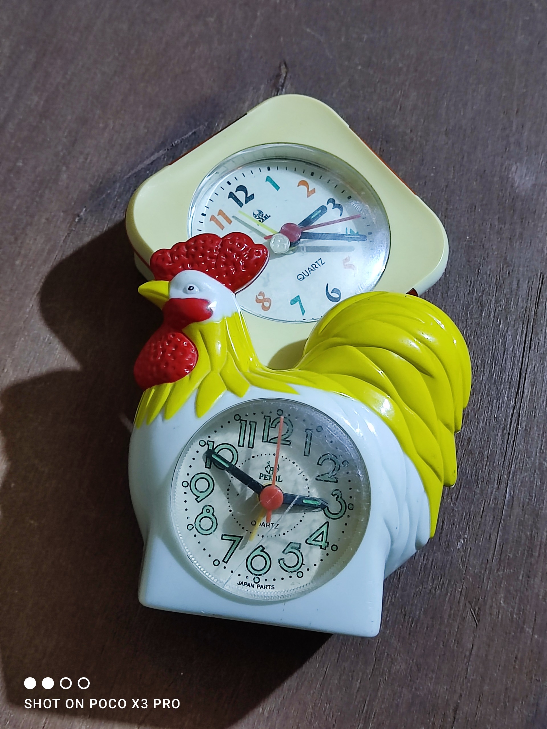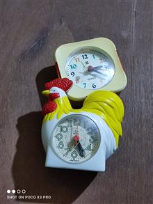 دو عدد ساعت بسیار زیبا و خاص مطابق تصاویر ساعتی که شکل خروس هست ژاپنیه قدیمیه و ظاهرشم سالم و بکر اما نیاز به تعمیر داره ساعت کناریش در حد نو سالم و تمیز هم زنگ خوره هم کناره هاش چراغ روشن میشه هنگام زنگ قیمت برای جفتشه بازم میگم ساعت خروسی معیوبه ظاهرش ولی سالمه ینی نیاز به تعمیر داره