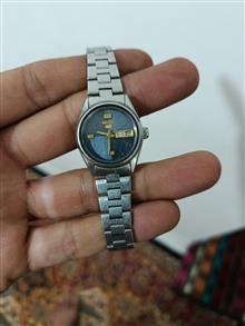 ساعت سیکو پنج زنانه درحد نو شب نما بند فابریک تاریخ و روز شمار دارد بسیار لوکس و قدیمی باتری ندارد فقط