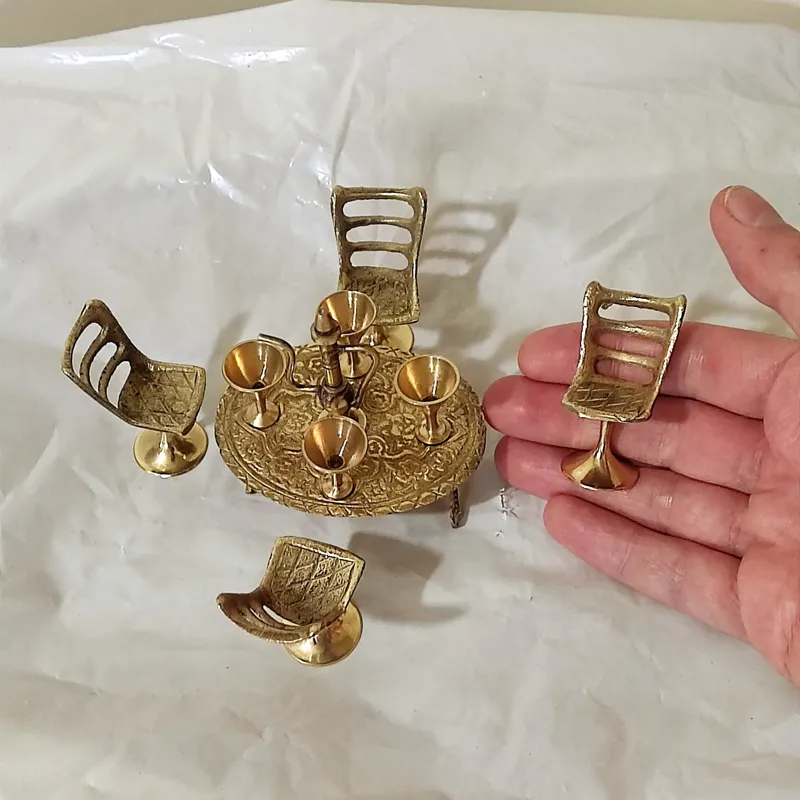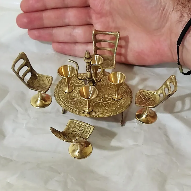 میز و صندلی تمام برنجی کوچک تزیینی ساخت هند با کیفیت بسیار بالا و محکم با سطح کیفیتی درجه یک بسیار زیبا و قابل شستشو بدون تغییر رنگ