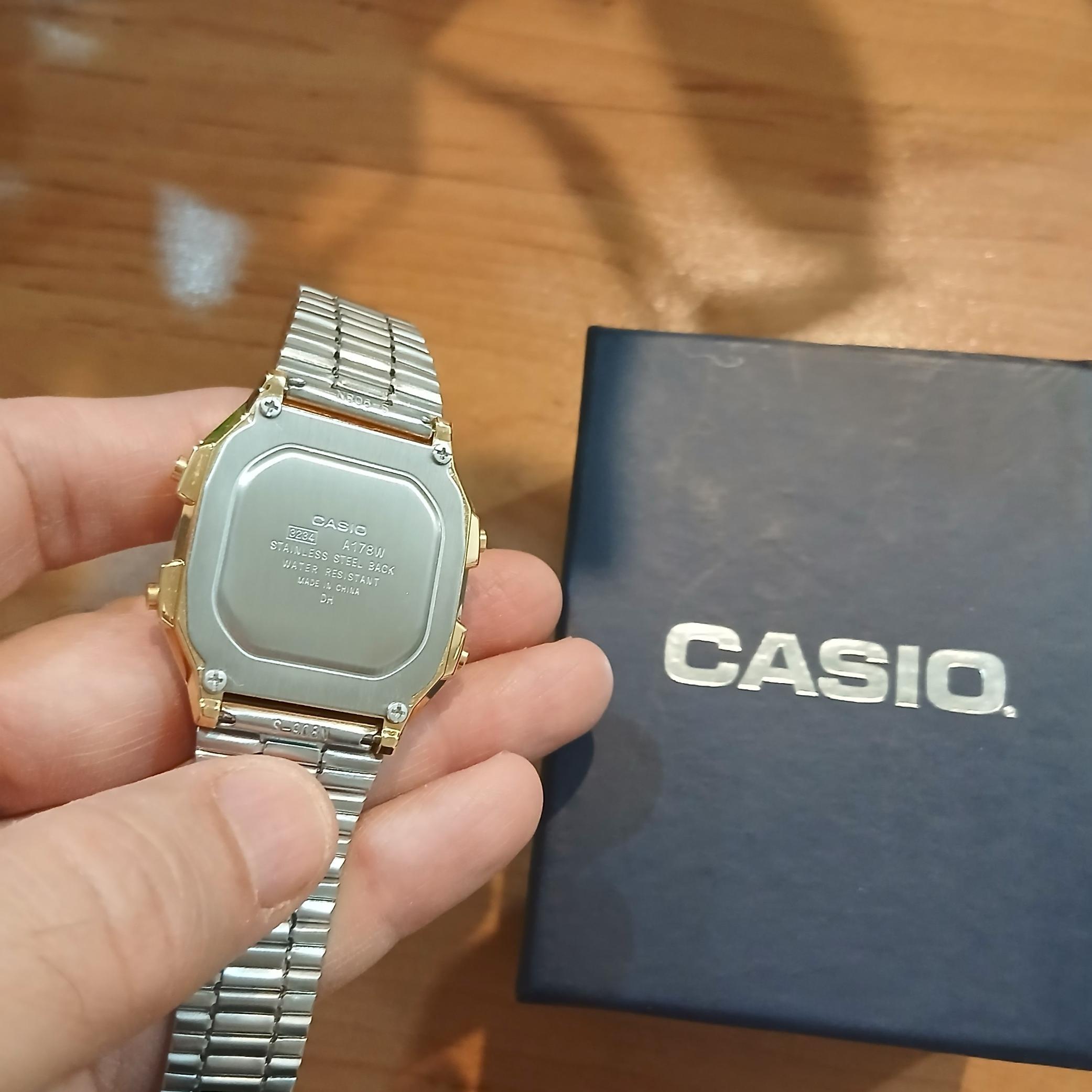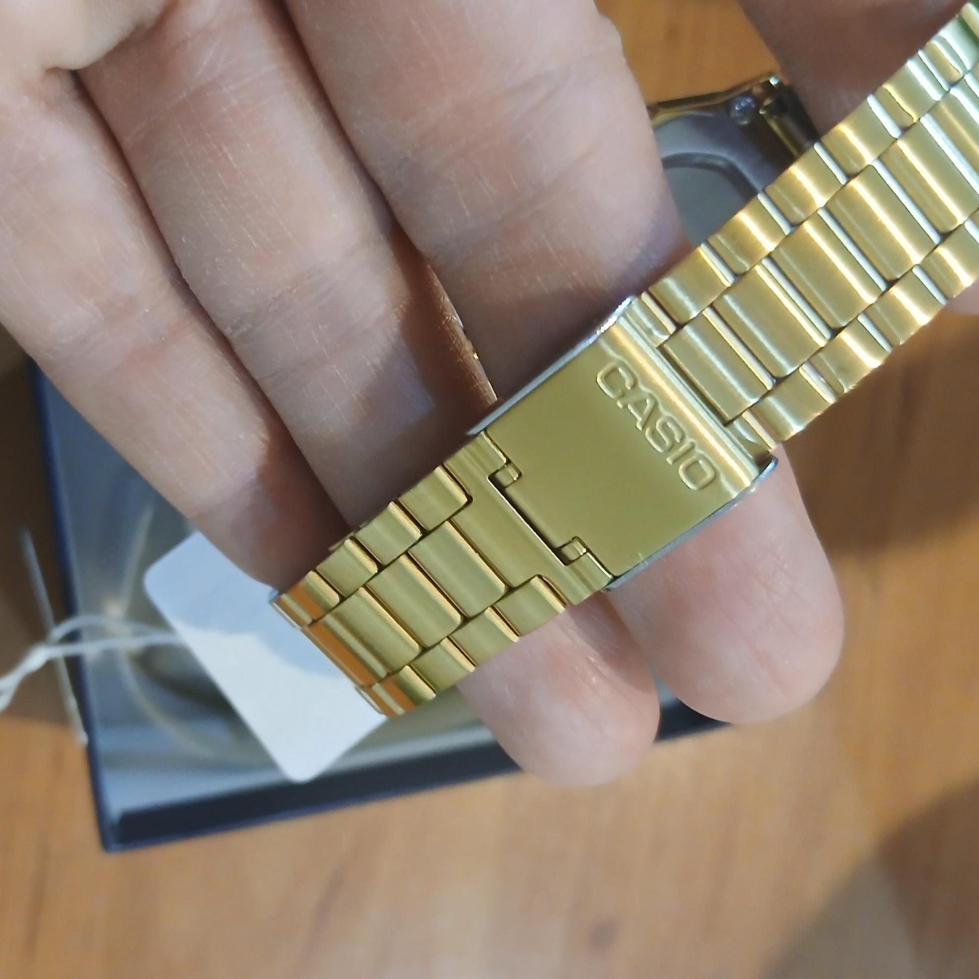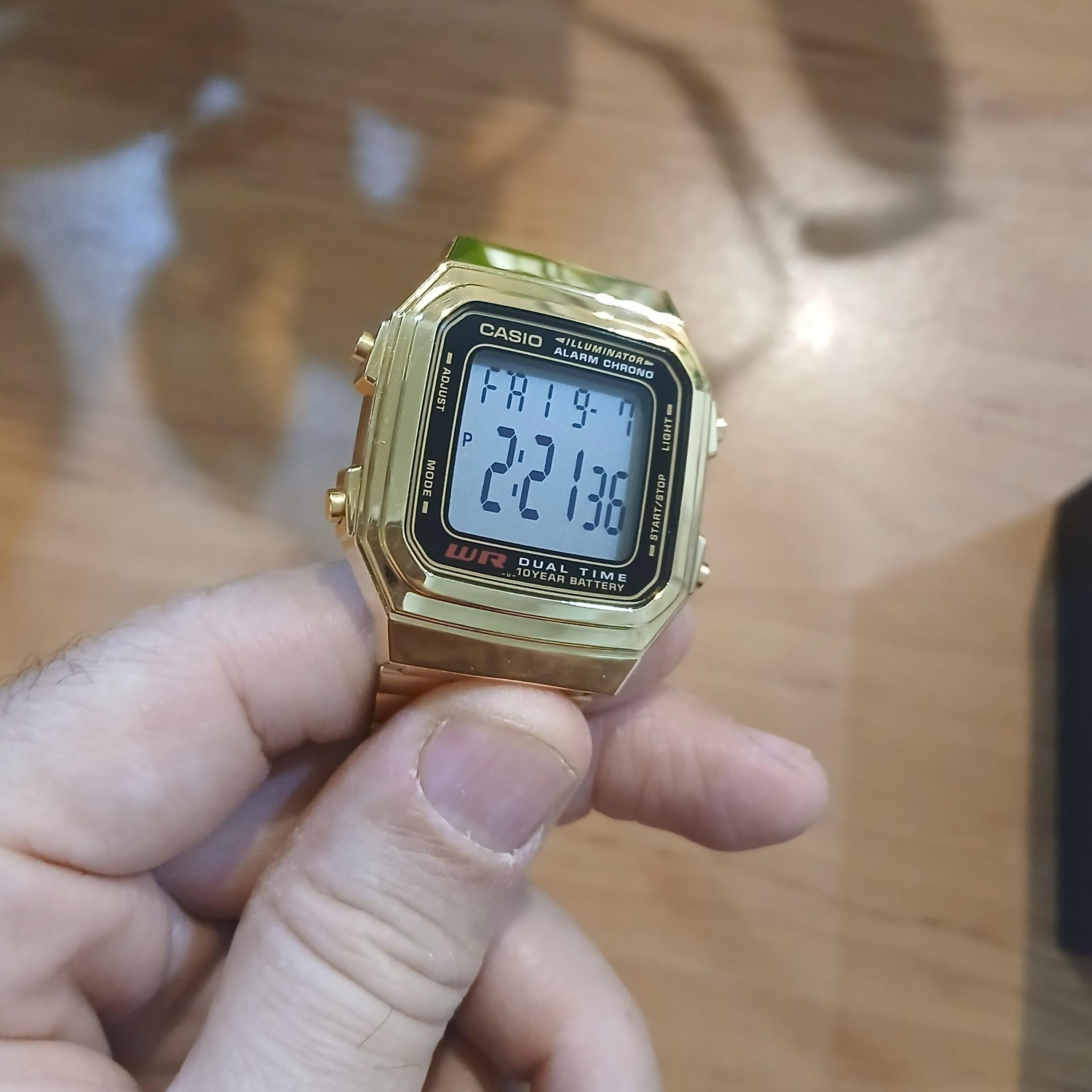 یک عدد ساعت مچی کاسیو دیجیتال A178WGA-1A طلایی رنگ کاملا نو که از زمان خریداری داخل جعبه و در گنجه بوده . با مشخصات زیر و باتری 10 ساله تقدیم می شود . با قیمت بسیار کمتر از قیمت روز .قیمت بازار 6/5 تا 8 میلیون است .هزینه پست هم با من .