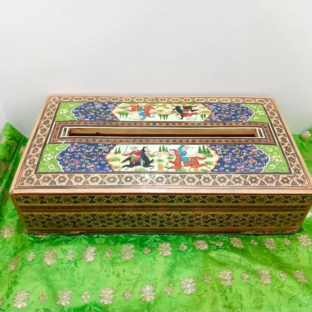 جا دستمال کاغذی تمام خاتم کاری شده قدیمی