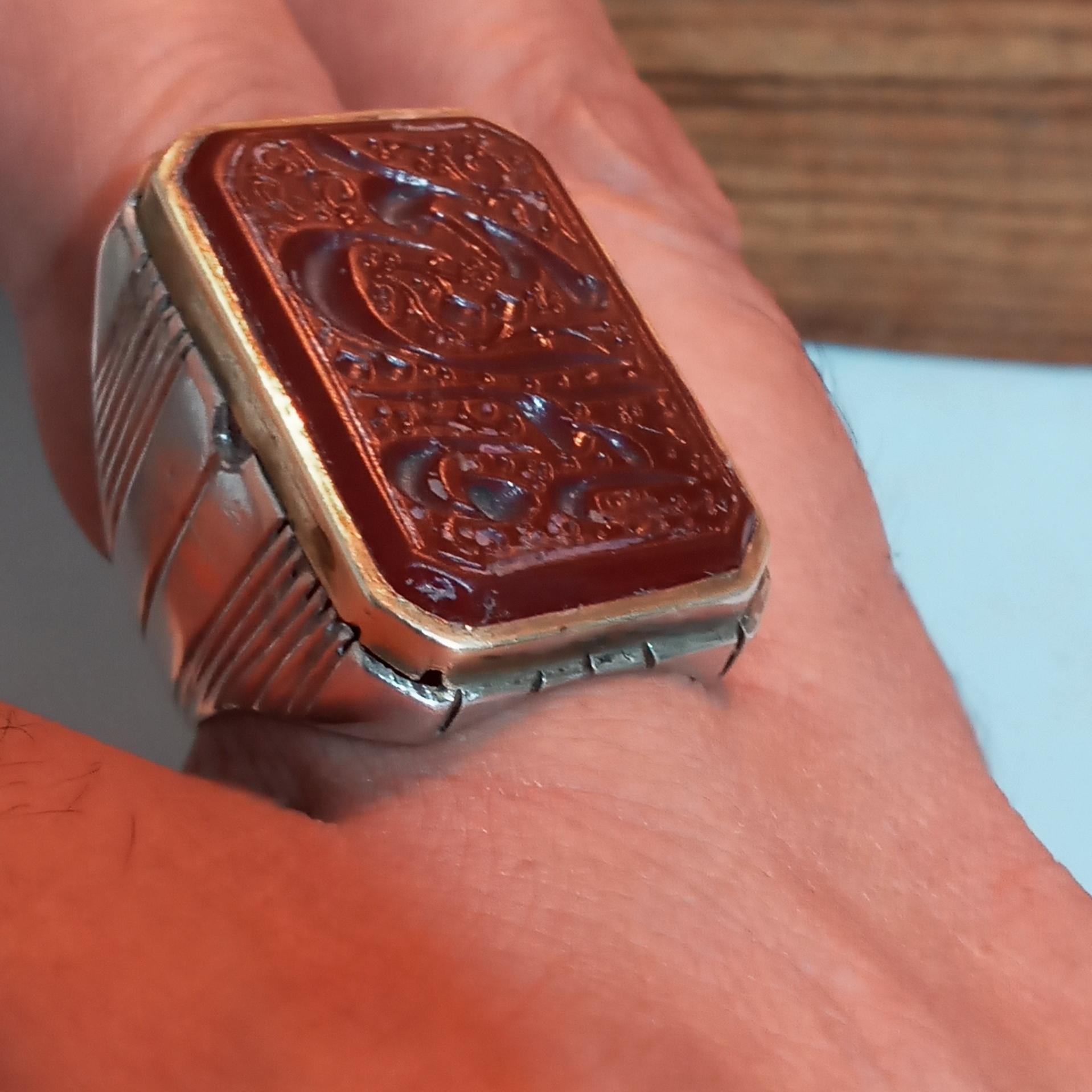 انگشترنقره عیار925عقیق خط خراسان قدیمی قایم ال