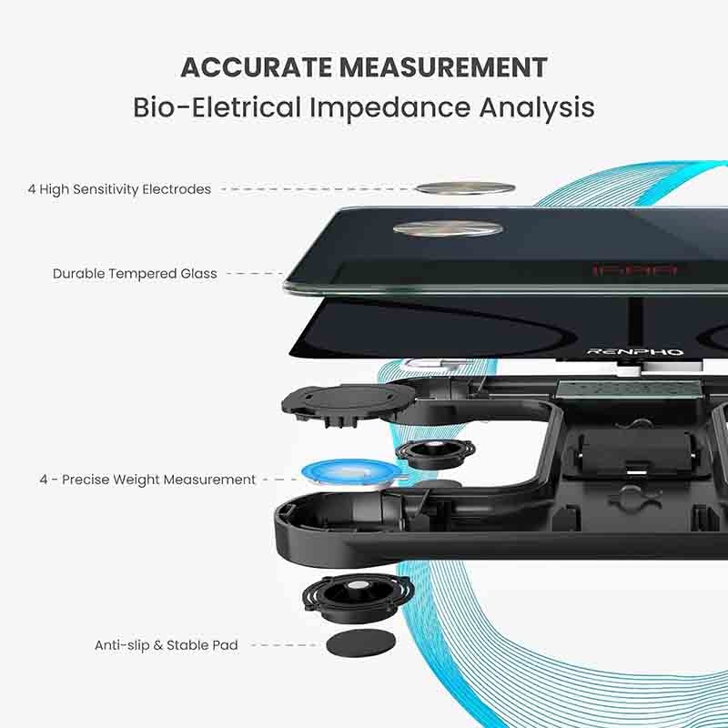 محکم و دقیق: ساخته شده از شیشه سکوریت 6 میلیمتری و مجهز به 4 الکترود با مشخصات بالا. حسگرهای با دقت بالا با افزایش 0.2 پوند با ظرفیت 396 پوند، برای دریافت پاسخ دقیقتر به تغییرات.