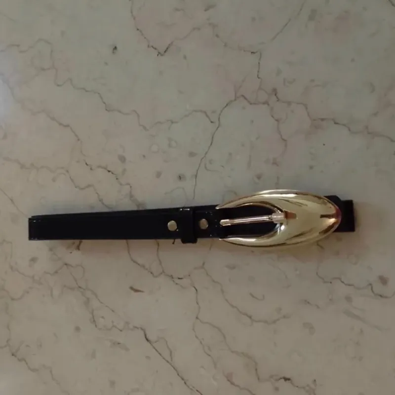 کمربند مشکی طلایی ورنی سگکدار چرم زنانه