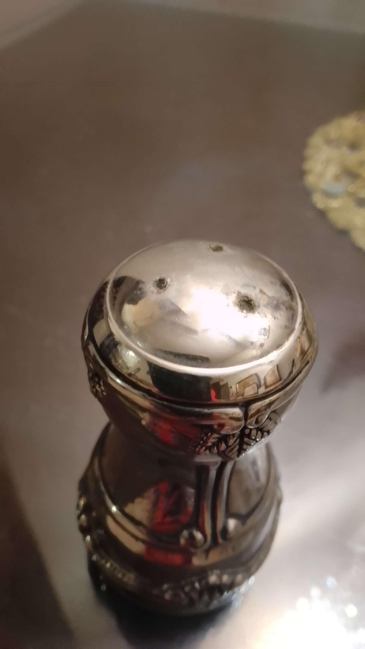یک عدد نمکدان سیلور پلیت نقش برجسته با درپوش زیر که فابریک میباشد