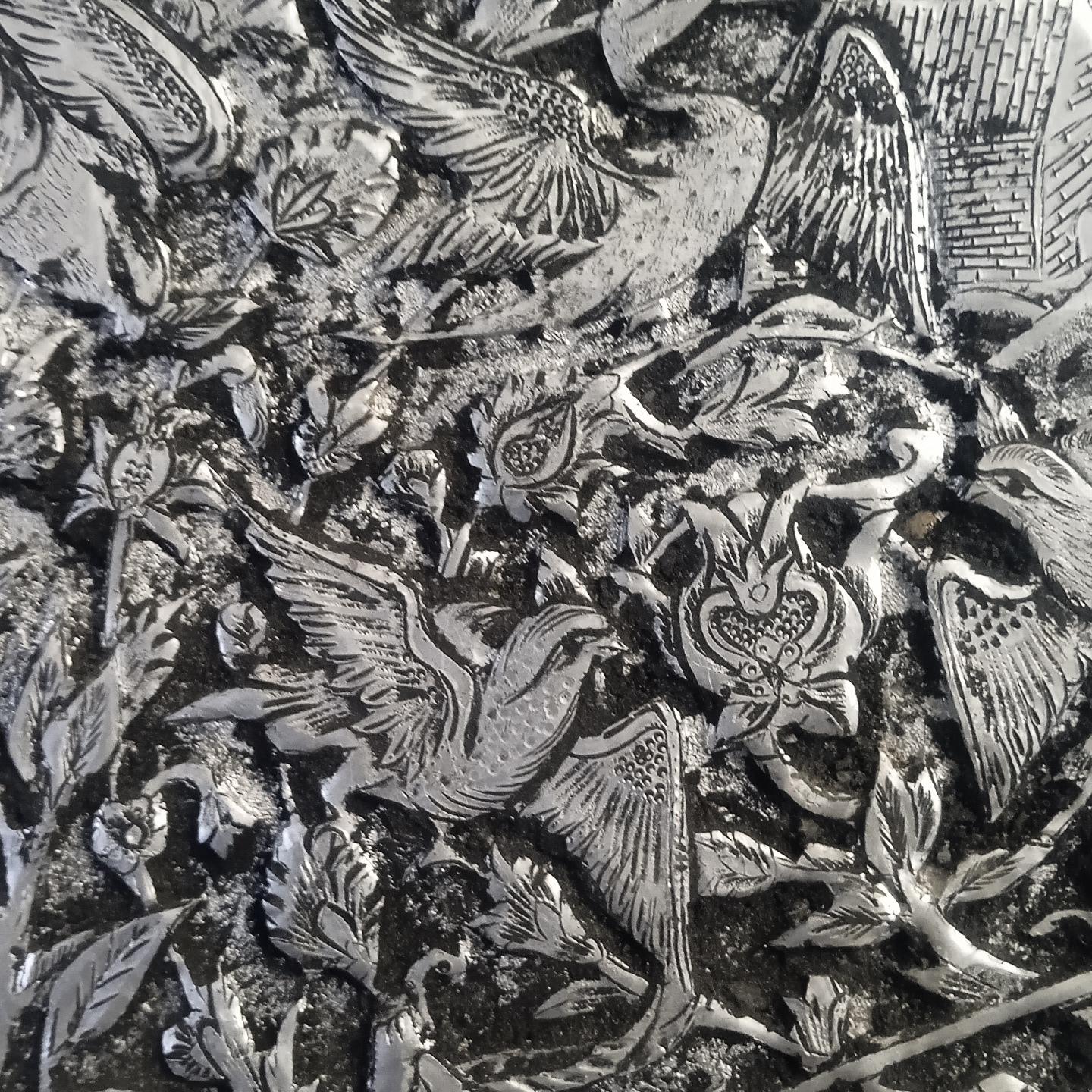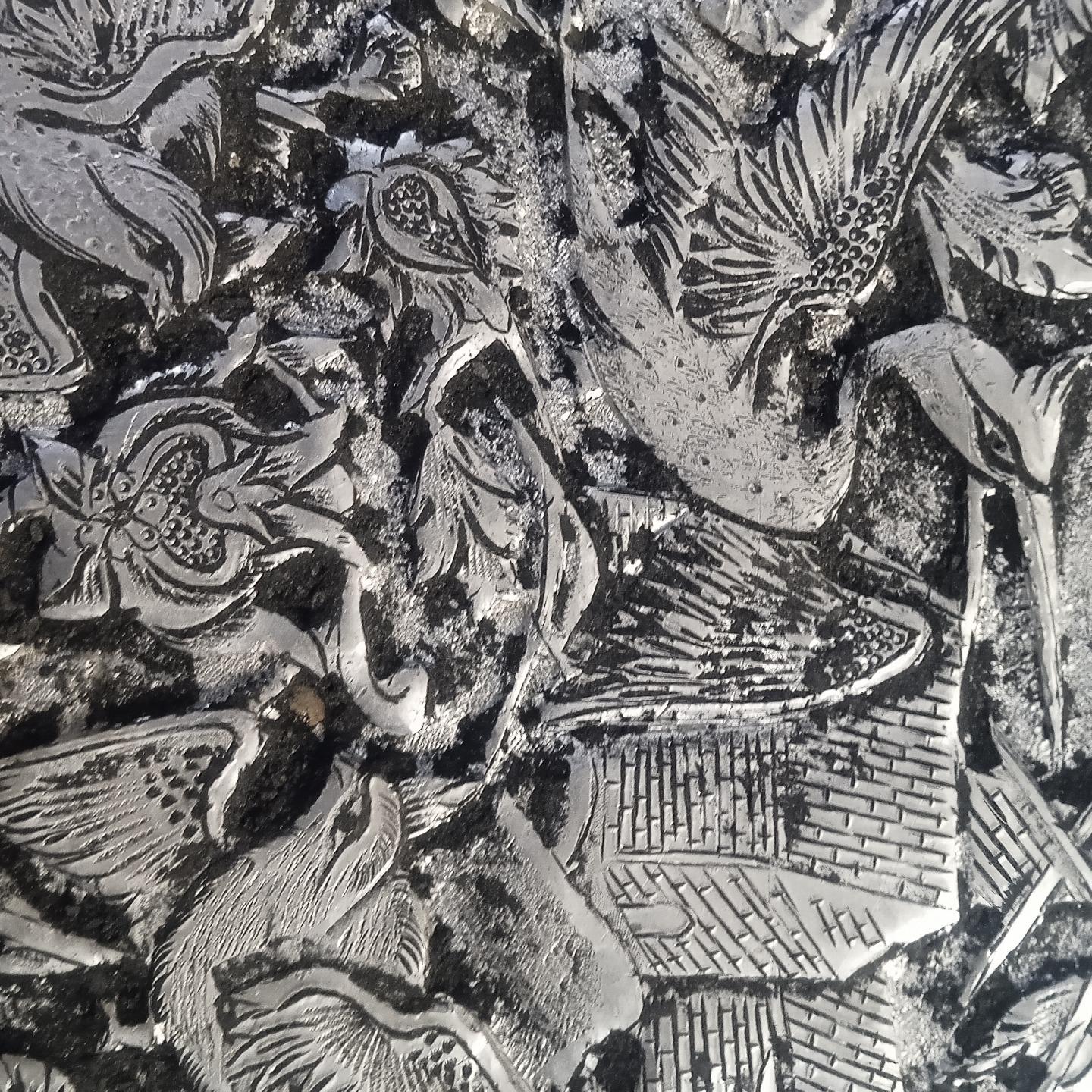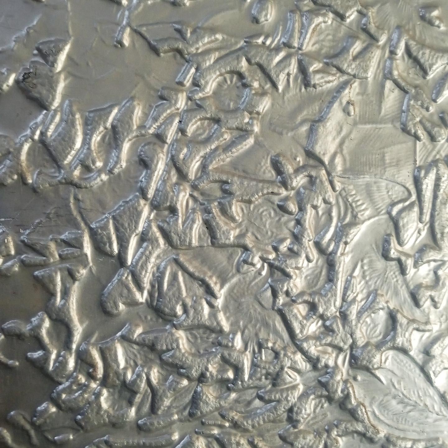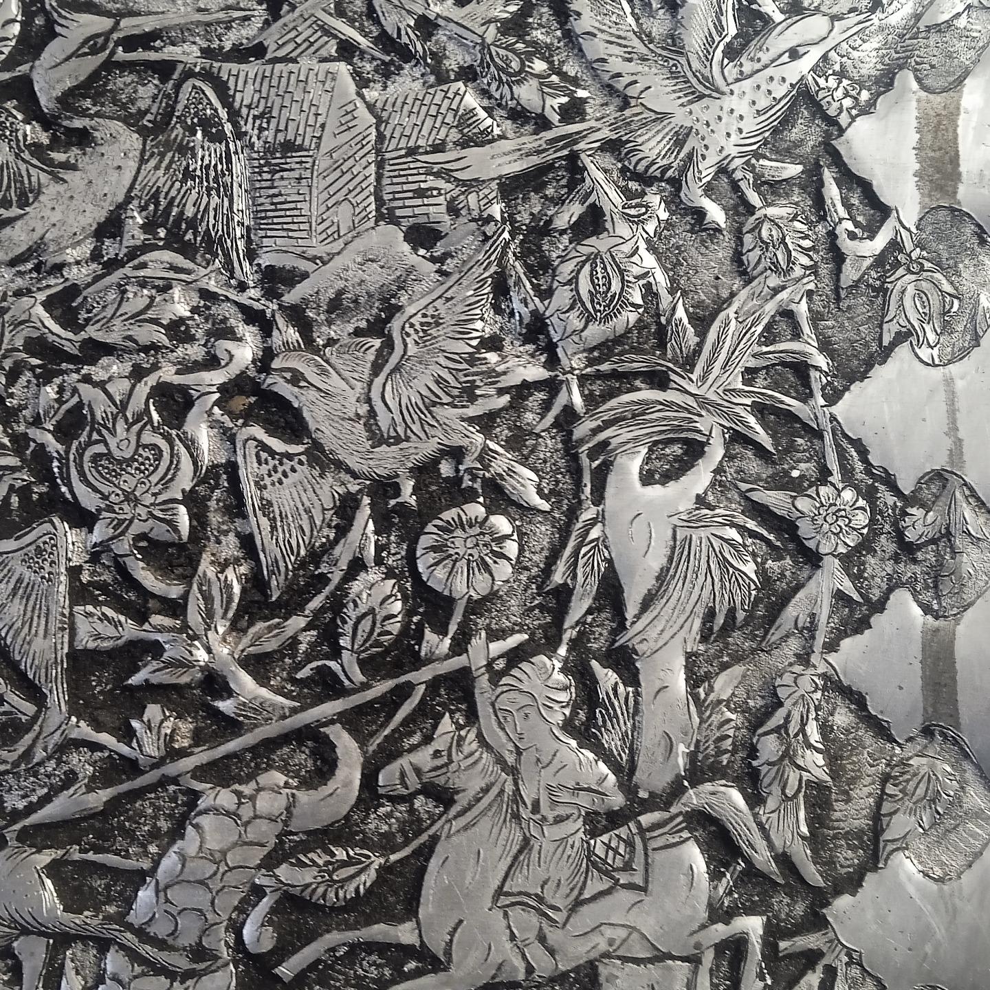 تابلو قلم زنی به ابعاد 25 در 19 سانتیمتر که بنظر روی آلومینیم انجام شده باشه .