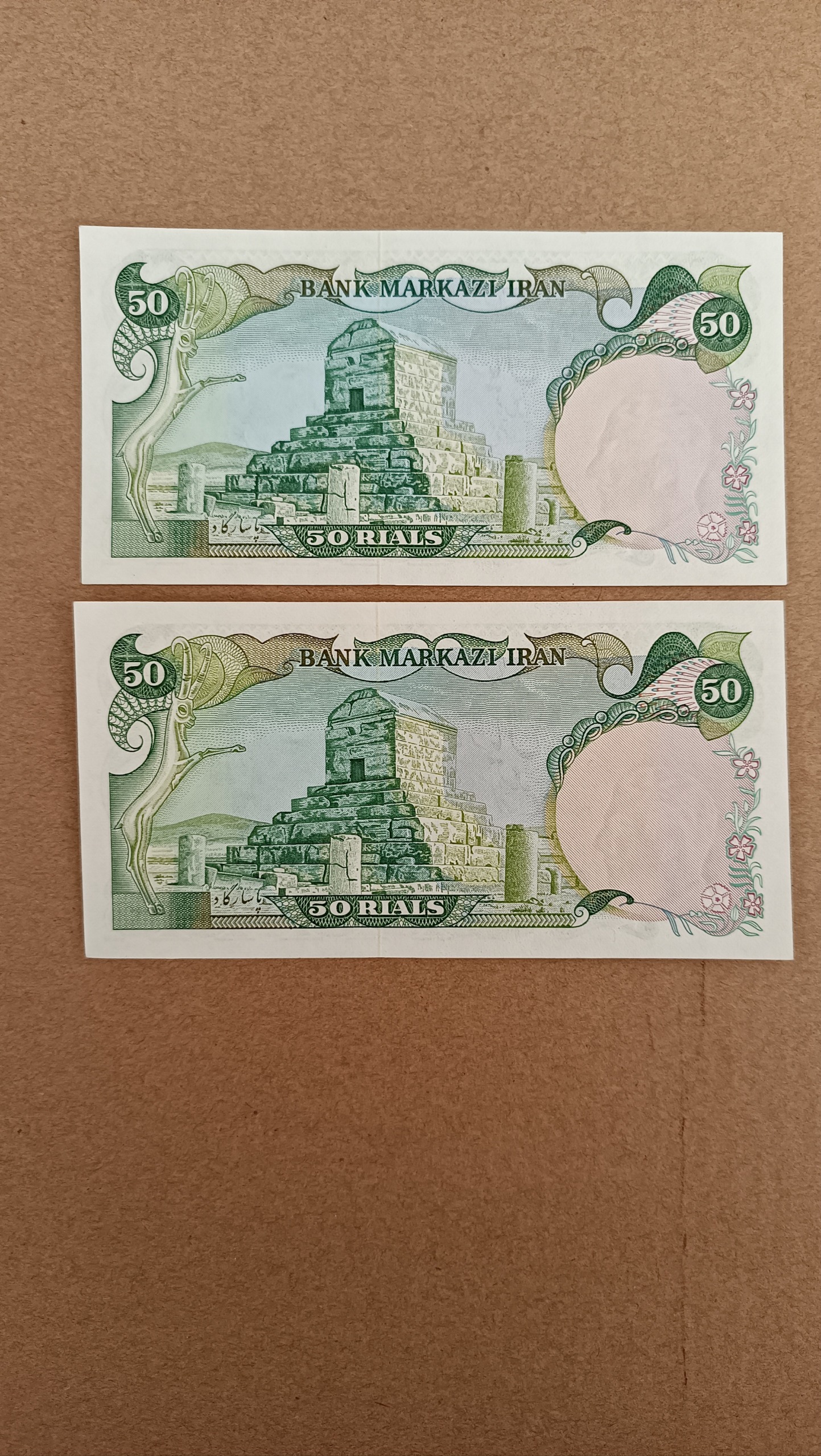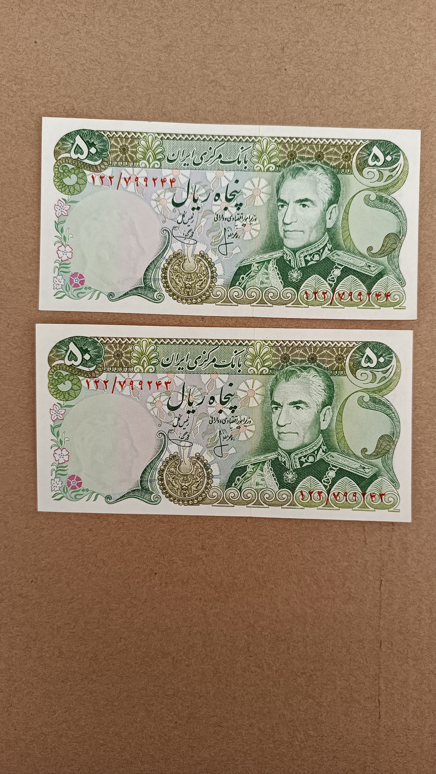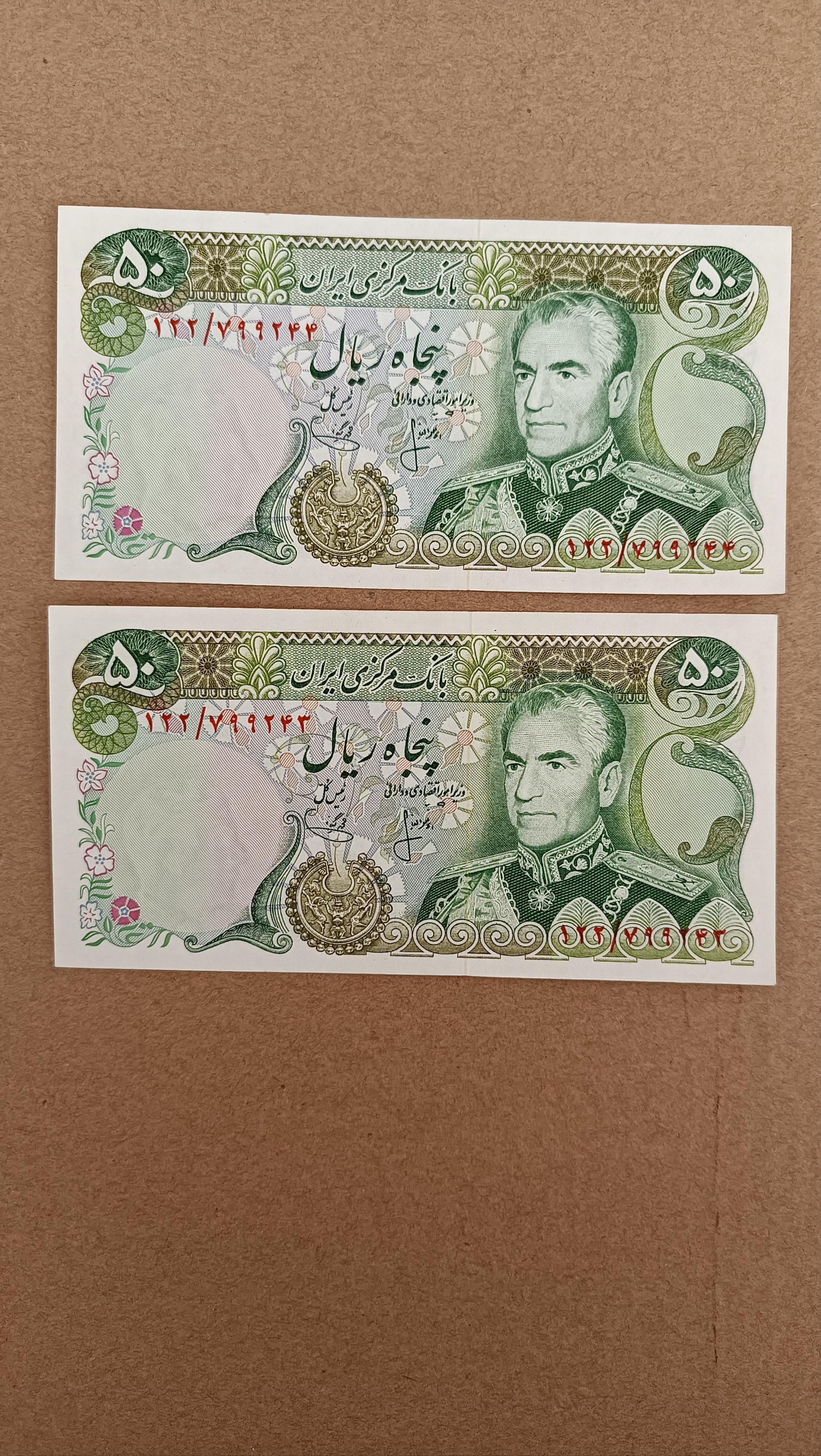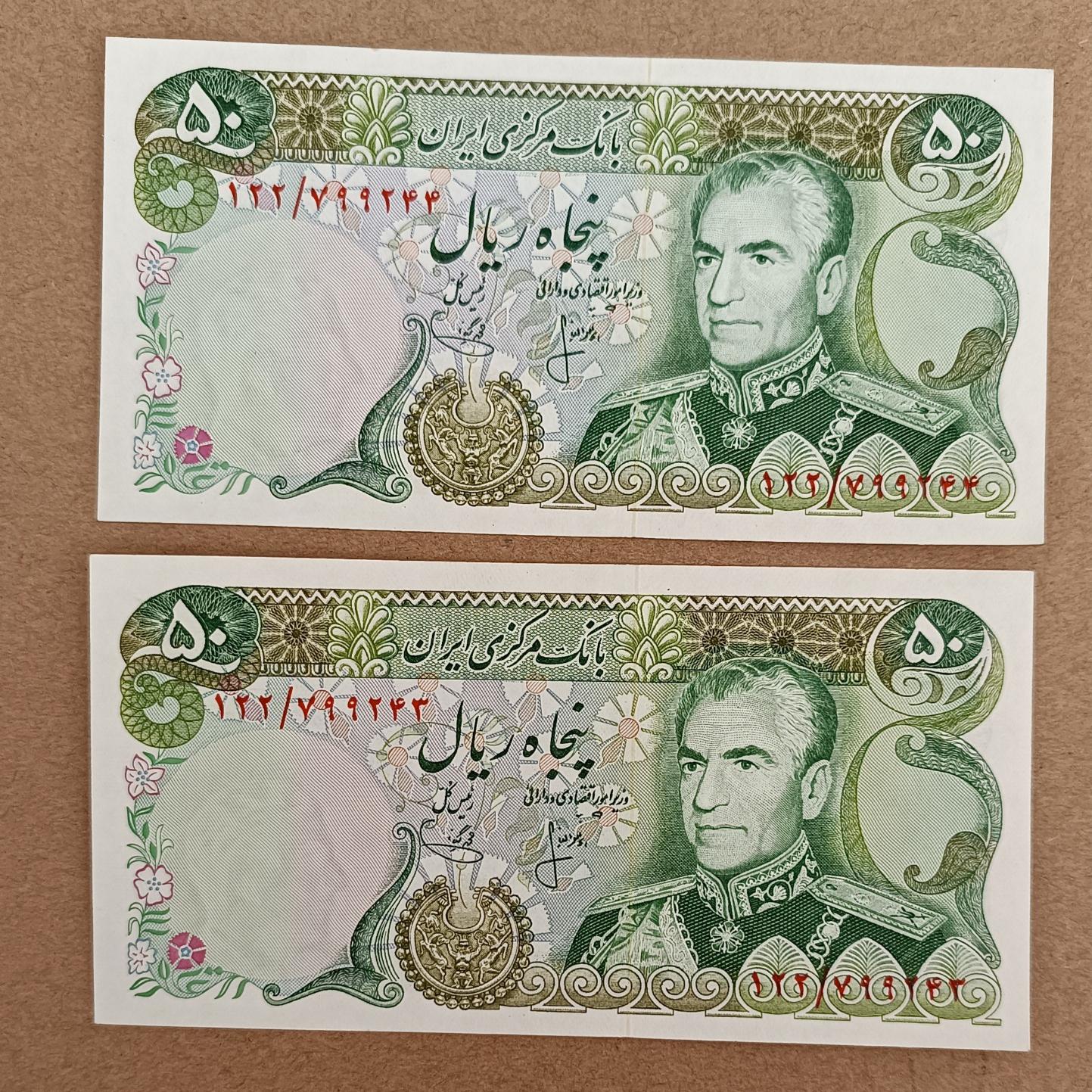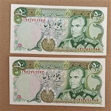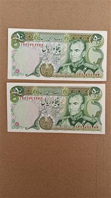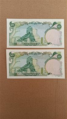 جفت اسکناس 50 ریال محمد رضا پهلوی