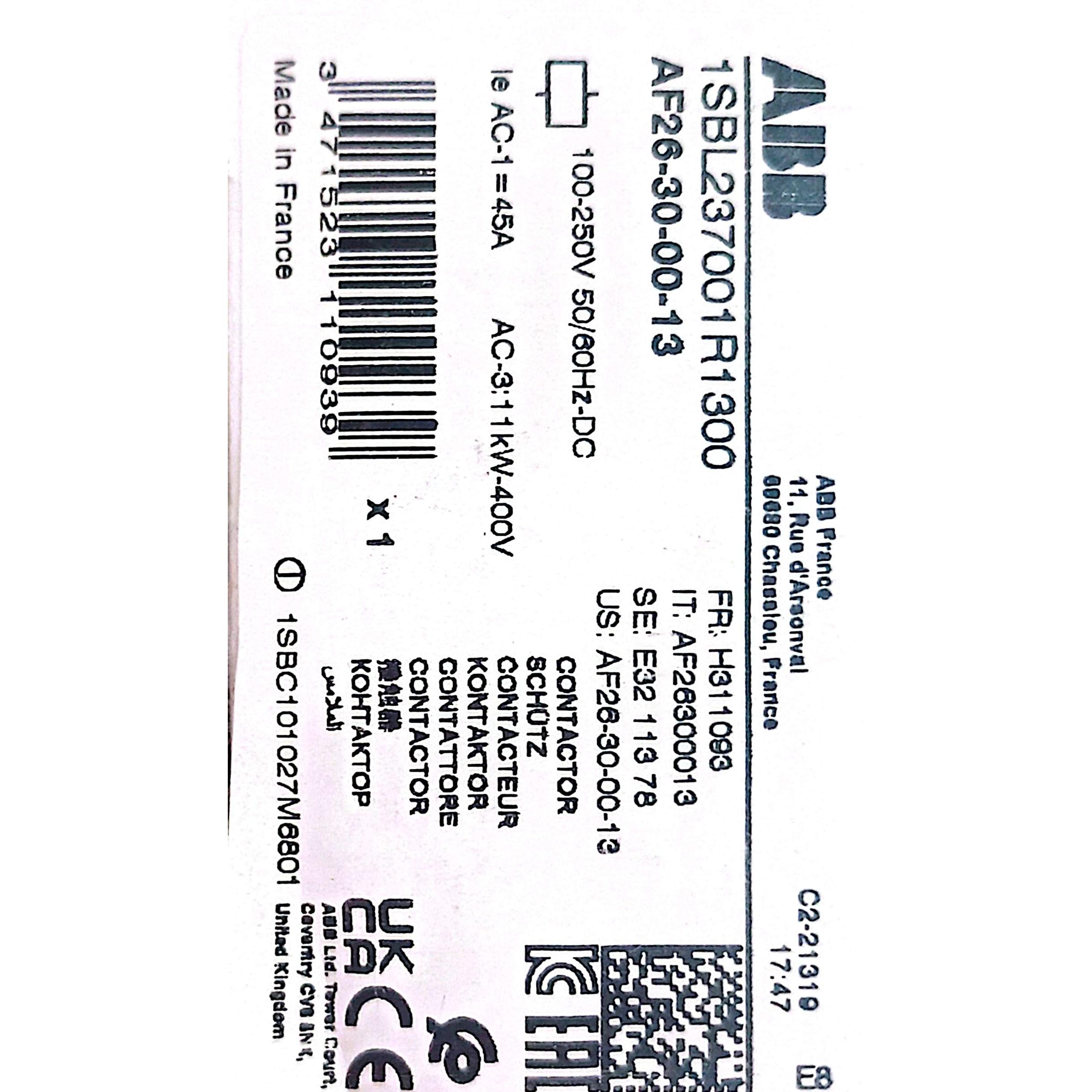 کنتاکتور 45 آمپر ABB الکتریک AF26-30-00-13 مطابق عکس های ارسالی