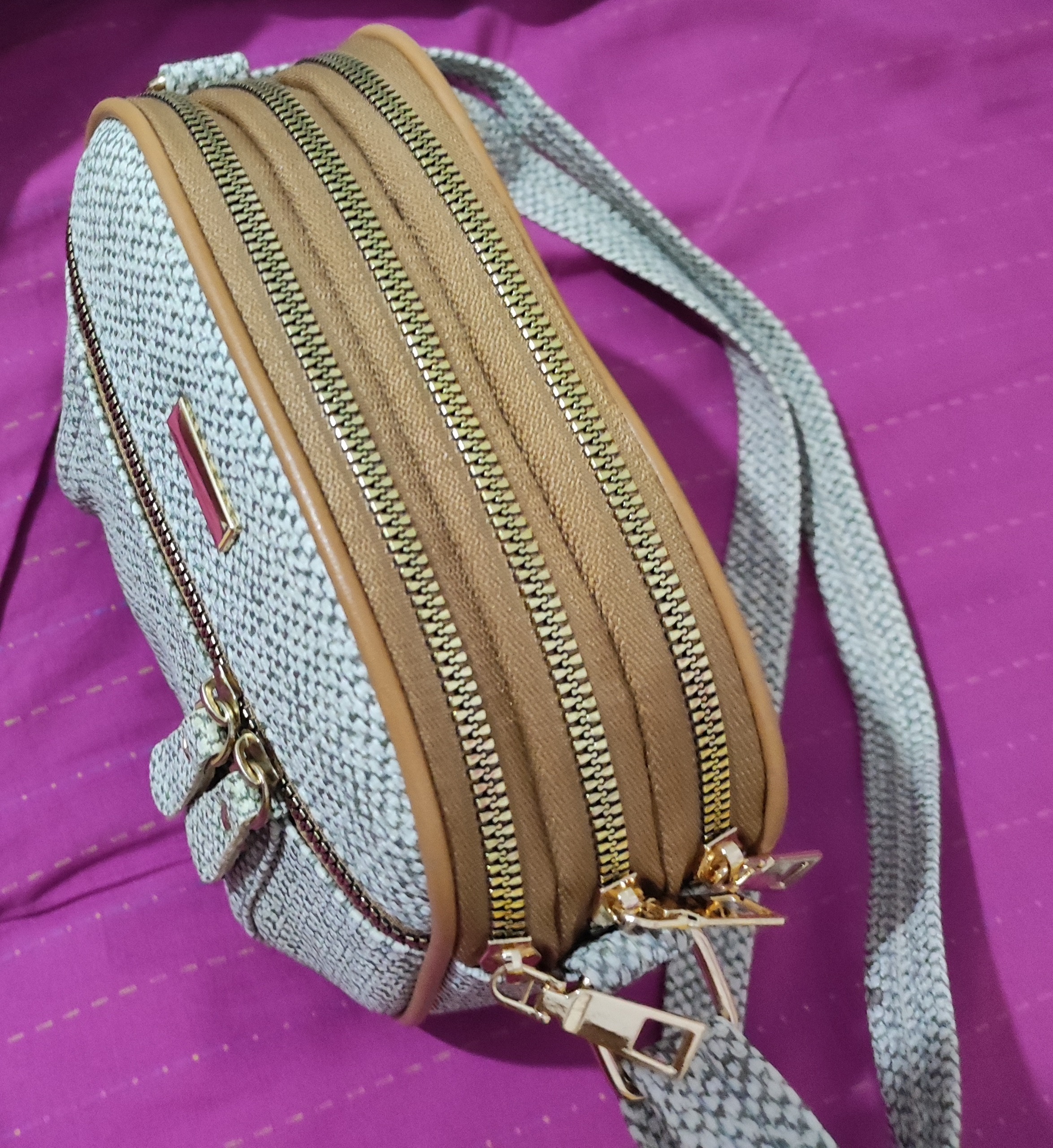 کیف استفاده نشده و نو دارای بند بلند و دارای 3 زیپ.جادار و مناسب برای استفاده ی روزانه