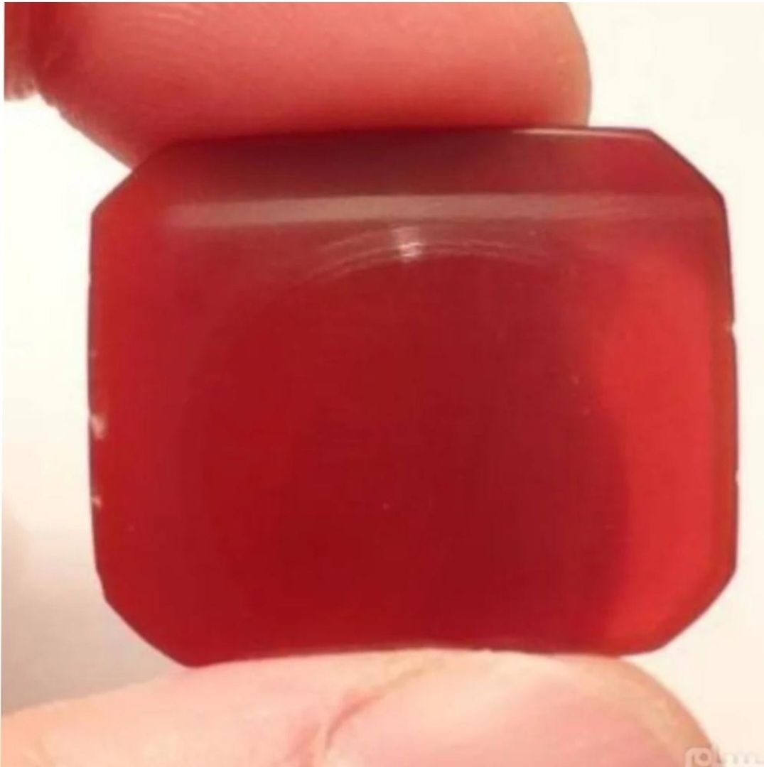 یک قطعه عقیق یمنی کهنه سرخ خوش رنگ و خوش طبع با تراش هشت وجهی رو و زیر تخت یمن که بر روی آن با خط قدیمی و به سبک کوپال و بسیار زیبا و عالی با کرسی چینی آیه ( آیتالکرسی) با ابزار قدیمی حکاکی گردیده است