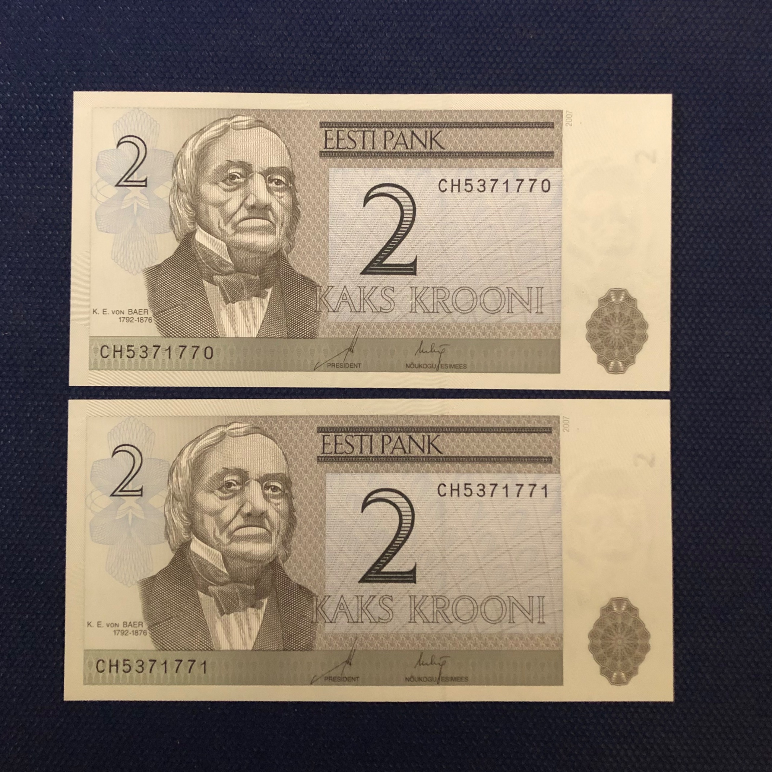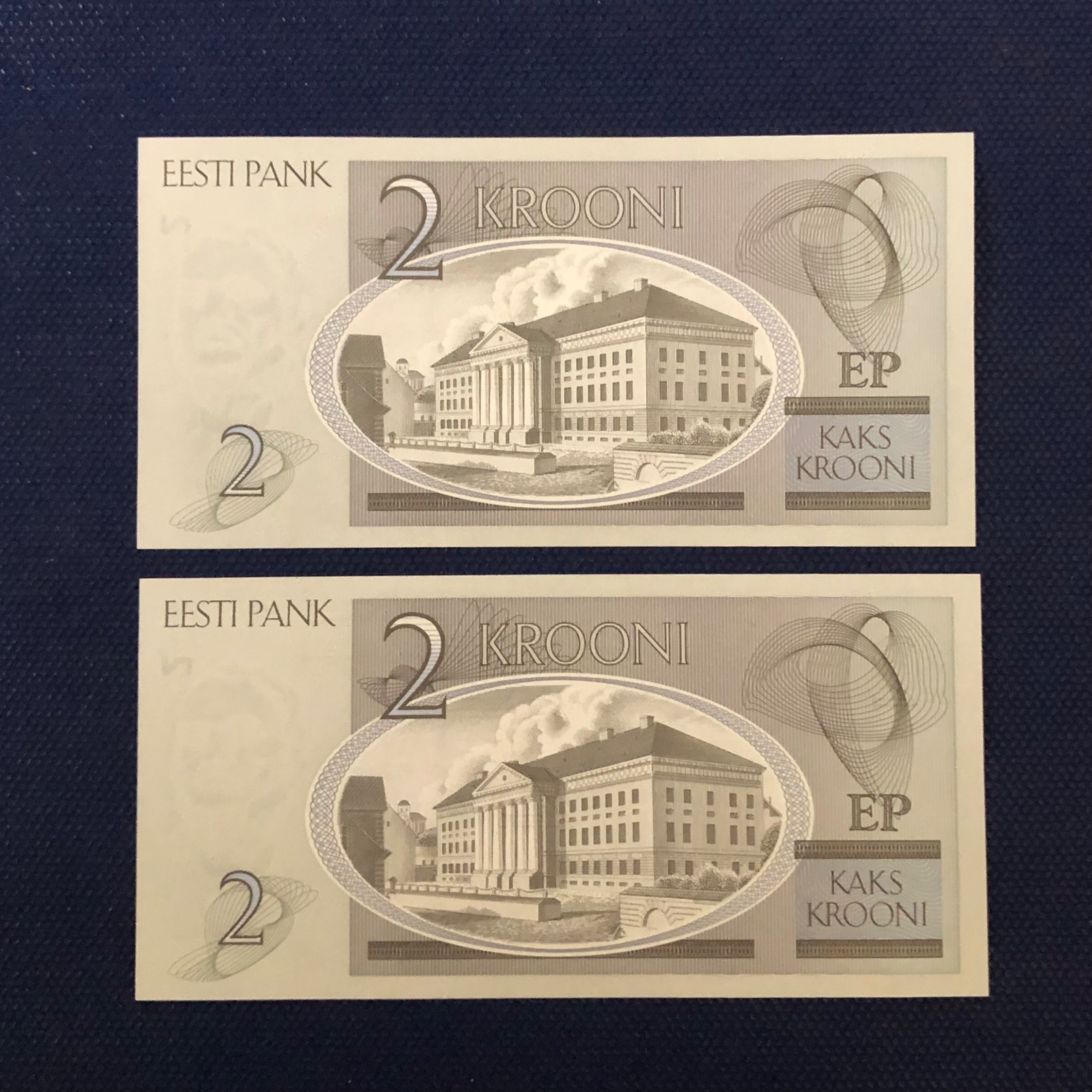 اسکناس جفت بانکی 2 کرون استونی شماره زیبا