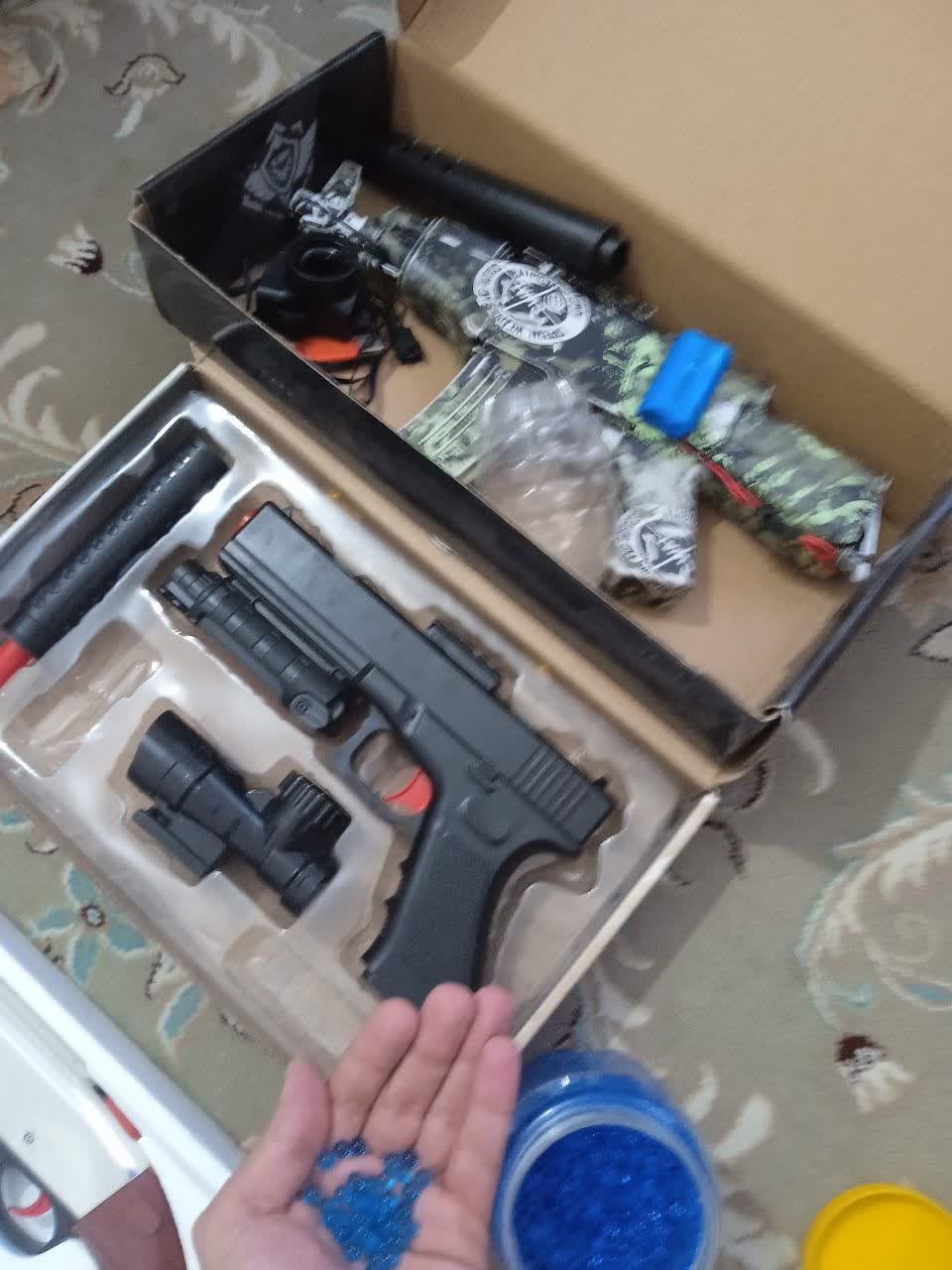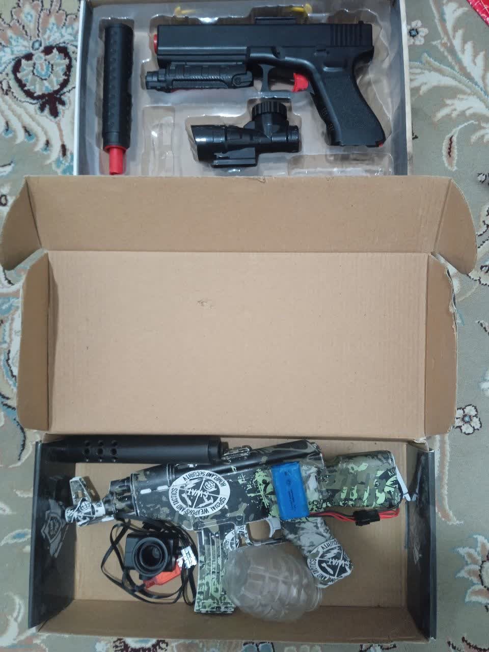 فروش ویژه دو عدد تفنگ تیر ژله ای شارژی به همراه مقداری هم تیر ژله ای..... مخصوص کسانی که به دنبال رقابت و تیر اندازی بی خطر به همدیگر هستند و میخواهند ( با هزینه بسیار کمی ) دو عدد تفنگ برای رویا رویی با هم بخرند و با هم مسابقه بگذارند و به هم شلیک کنند....