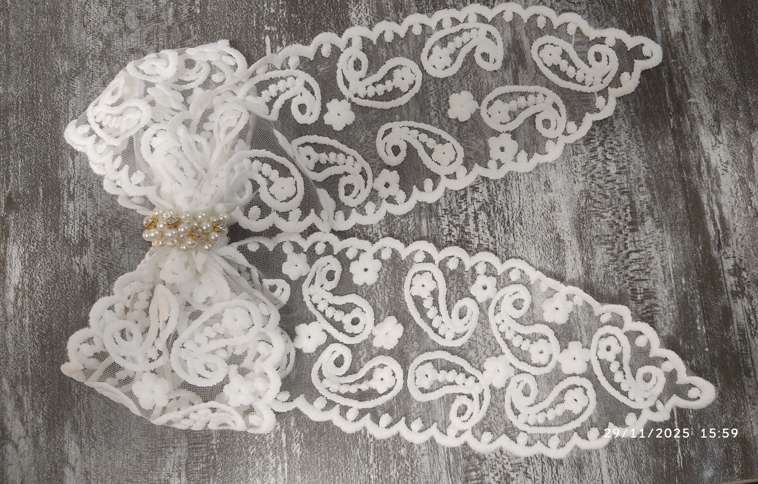 گلسر دانتل دست ساز با مروارید دوزی وسط گلسر بسیار عالی زیبایی چند برابر ی ب موهای شما میده