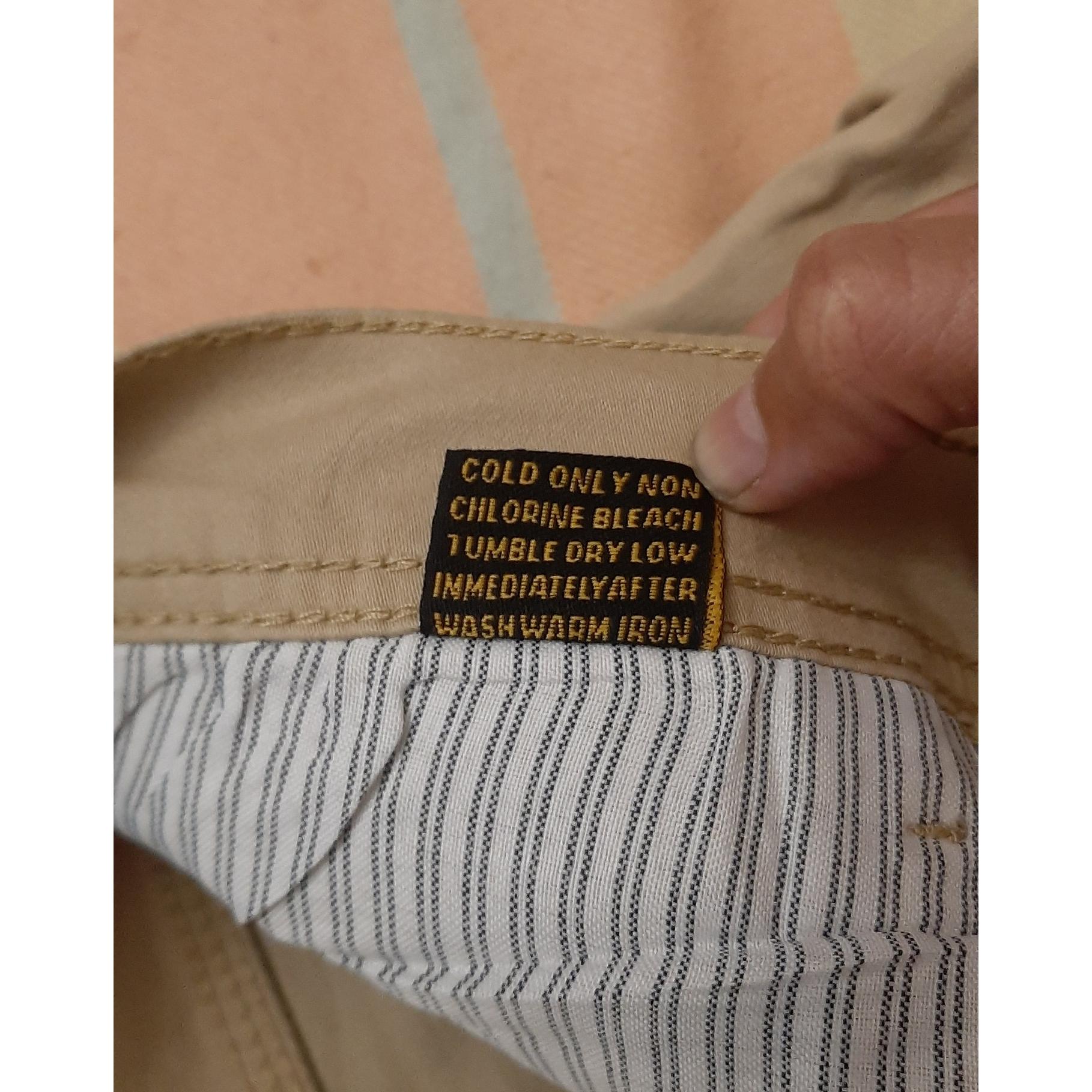 شلوار کتان لی جنس وارداتی خیلی عالی سایز 32 هست وکرم رنگ و راسته هست و روی تن بدون چروک هست جنس شلوار عالی هست