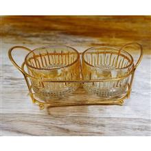 اردو خوری دو خانه مدل باکارا مناسب برای شکلات، آجیل، زیتون، خیارشور است، جنس ظرف از شیشه و جنس پایه فلز با آبکاری فورتیک است، اردو خوری بسیار شیک برای مهمانی های لاکچری شما عزیزان و همچنین بسیار مناسب برای جهیزیه و هدیه دادن به دوستان و عزیزانتان می باشد.
