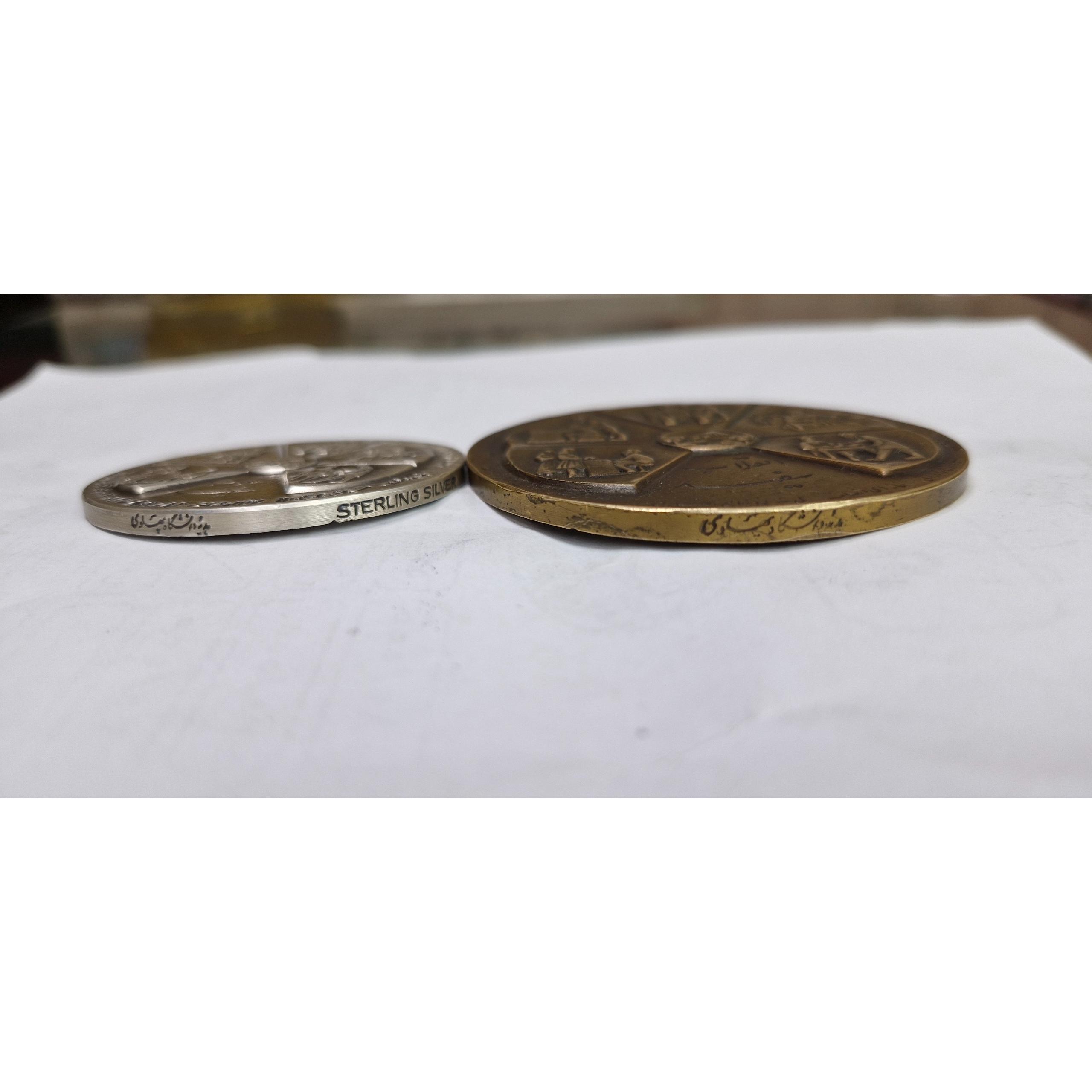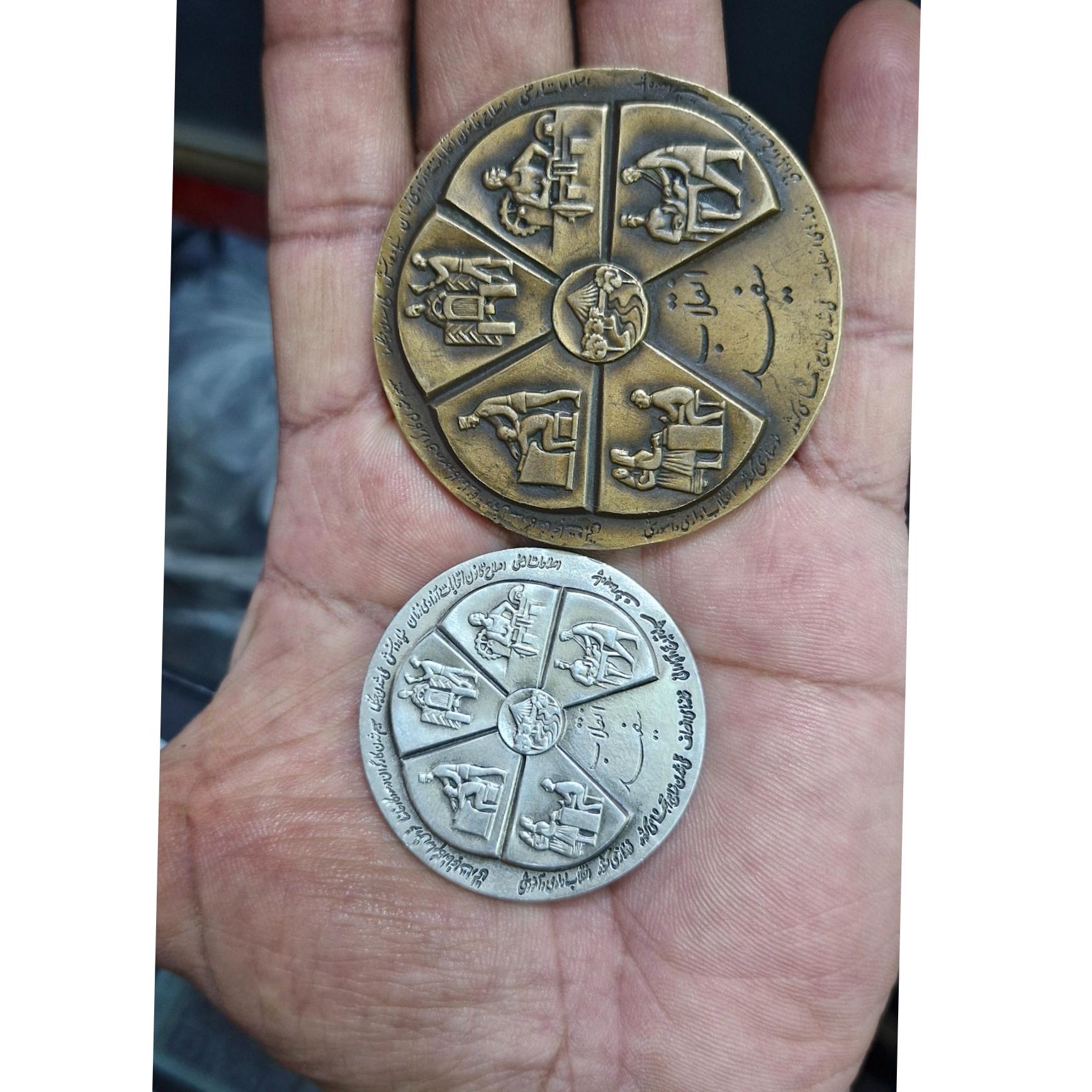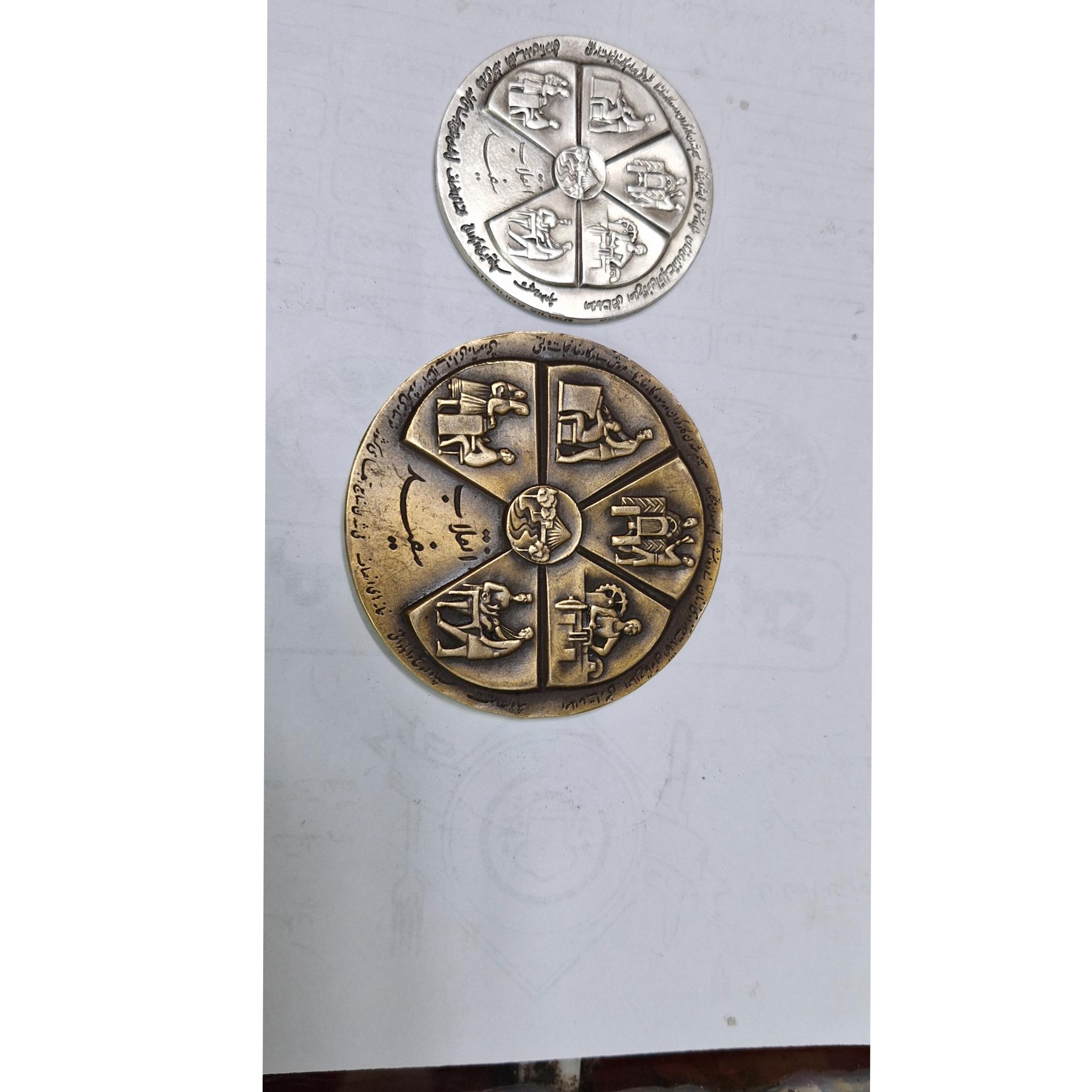 مدال یادبودی انقلاب سفید نقره و برنز .لبه های مدال برنز کمی ضرب خوردگی دارد.ضرب یک کیفیت مطابق با تصاویر هردو مدال با هم بفروش میرسد