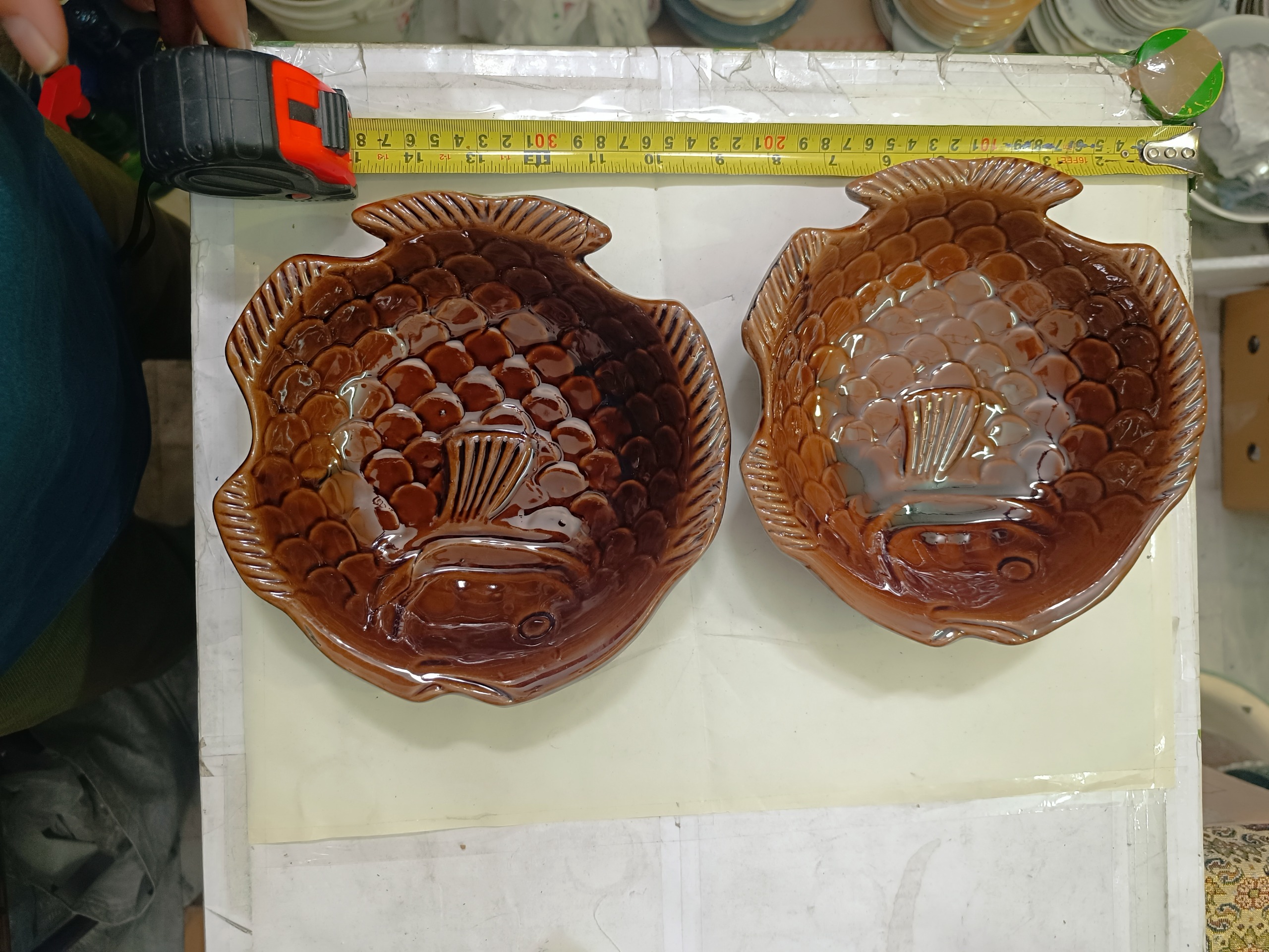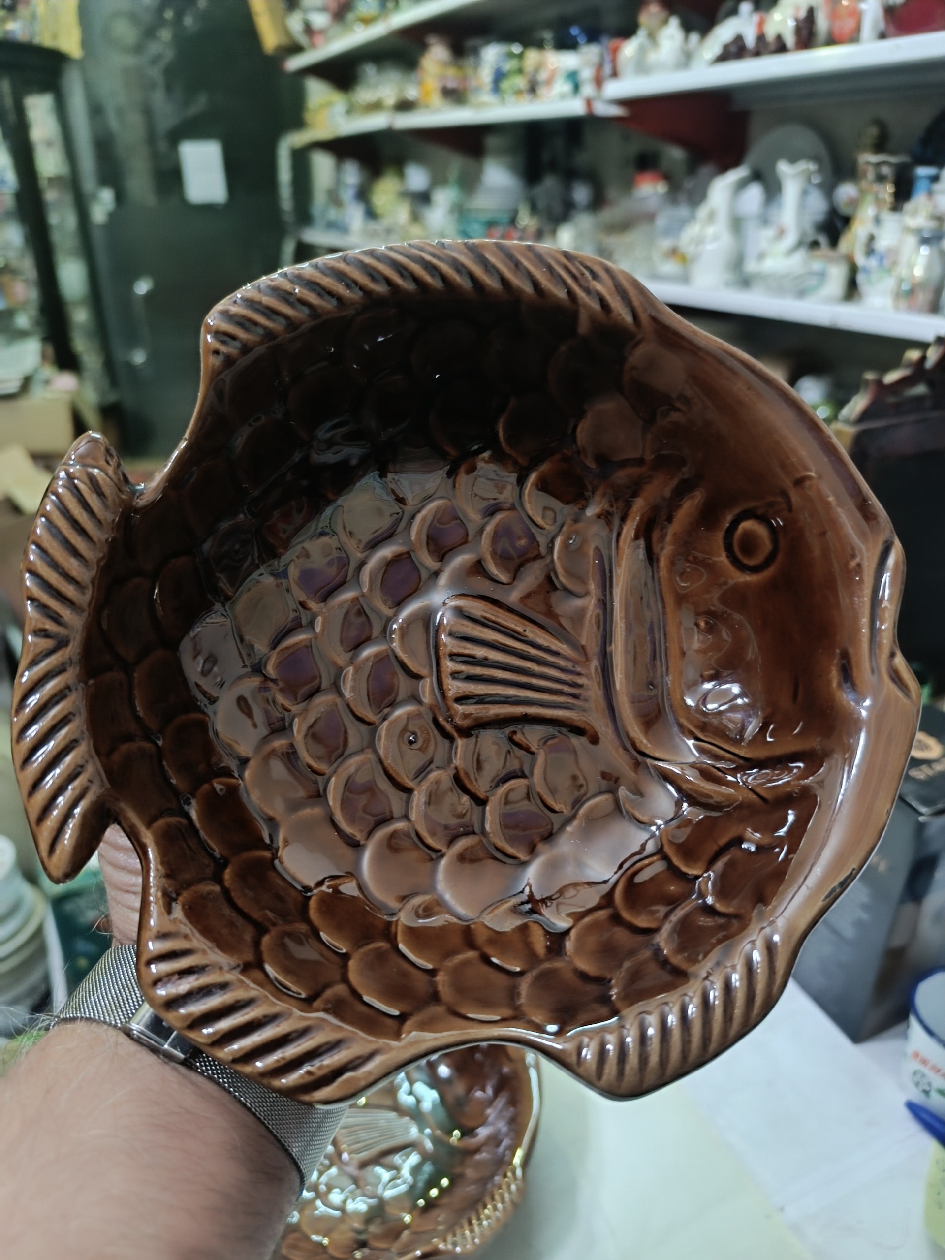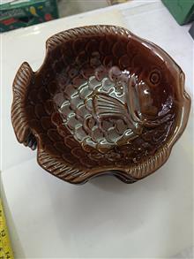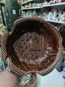 یک جفت ظرف آجیل خوری یا شکلات خوری سرامیکی شکلاتی رنگ با طرح ماهی ، کیفیت و ابعاد مطابق تصویر ، فروش بصورت جفت