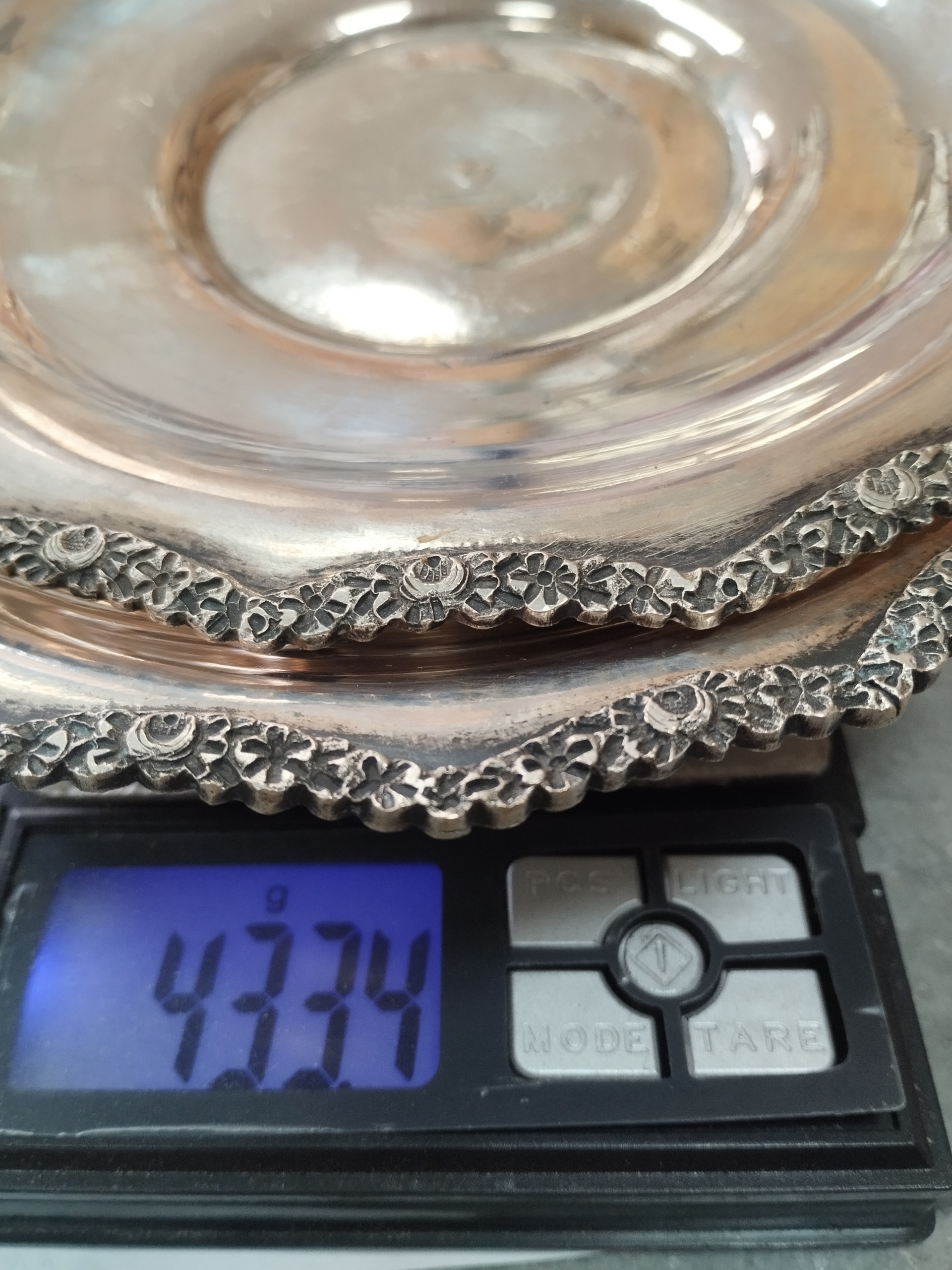 دو عدد شیرینی خوری قدیمی نقره ، عیار پایینتر از 84 به وزن 433 گرم و 400 صوت