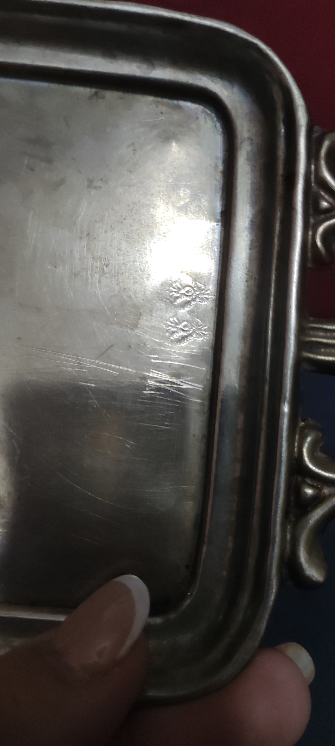 سینی فرمایشی یا قند پهلو ورشو قاجاری دو مهر قدیمی و کلکسیونی و آنتیک