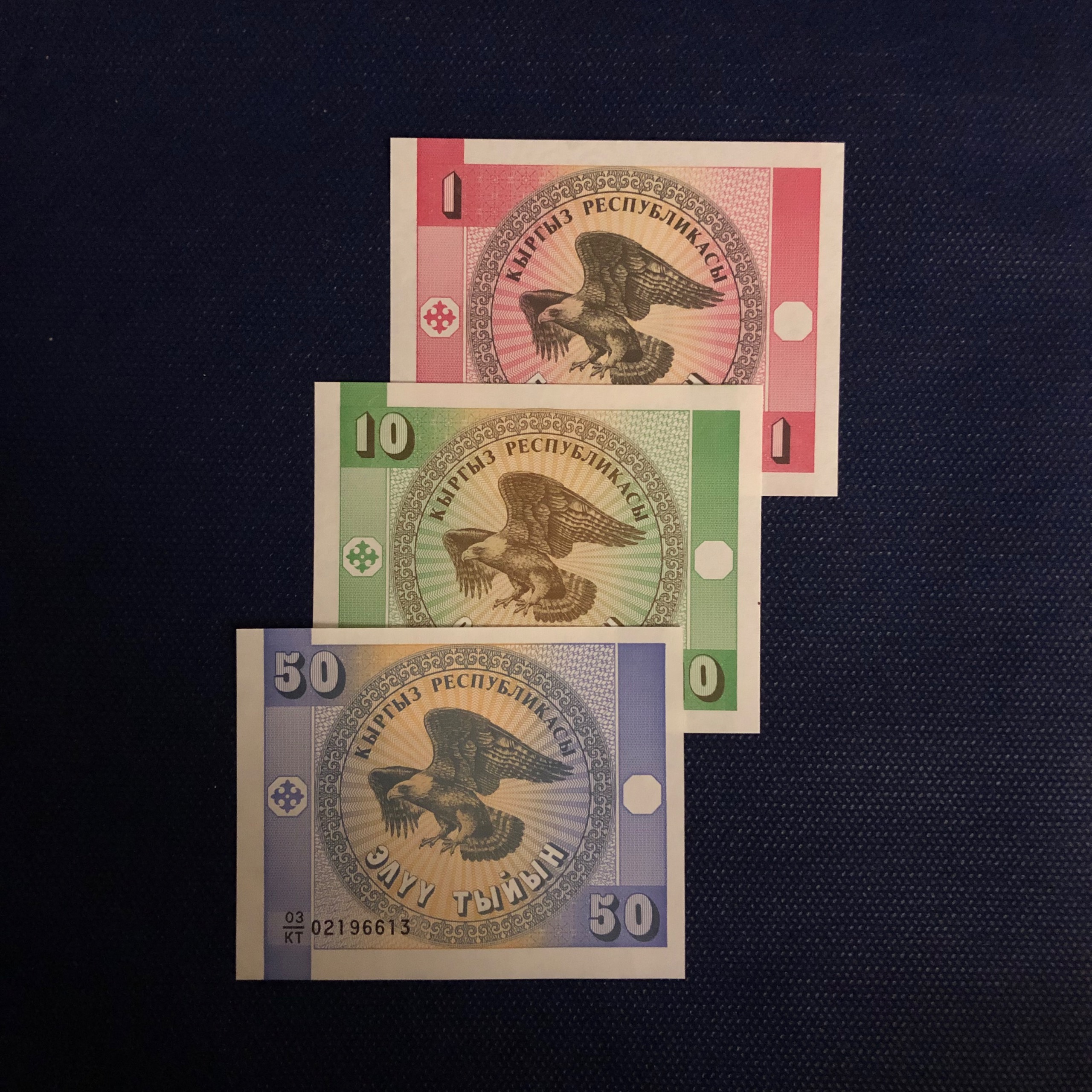 سه عدد اسکناس بانکی 1و10و50 تین قرقیزستان