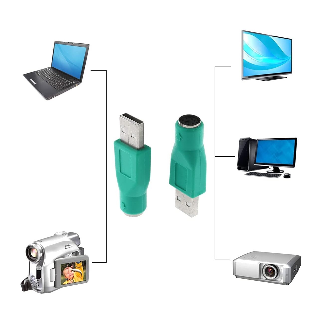 • مبدل جک و کانکتور یو اس بی به پی اس 2 رنگ سبز