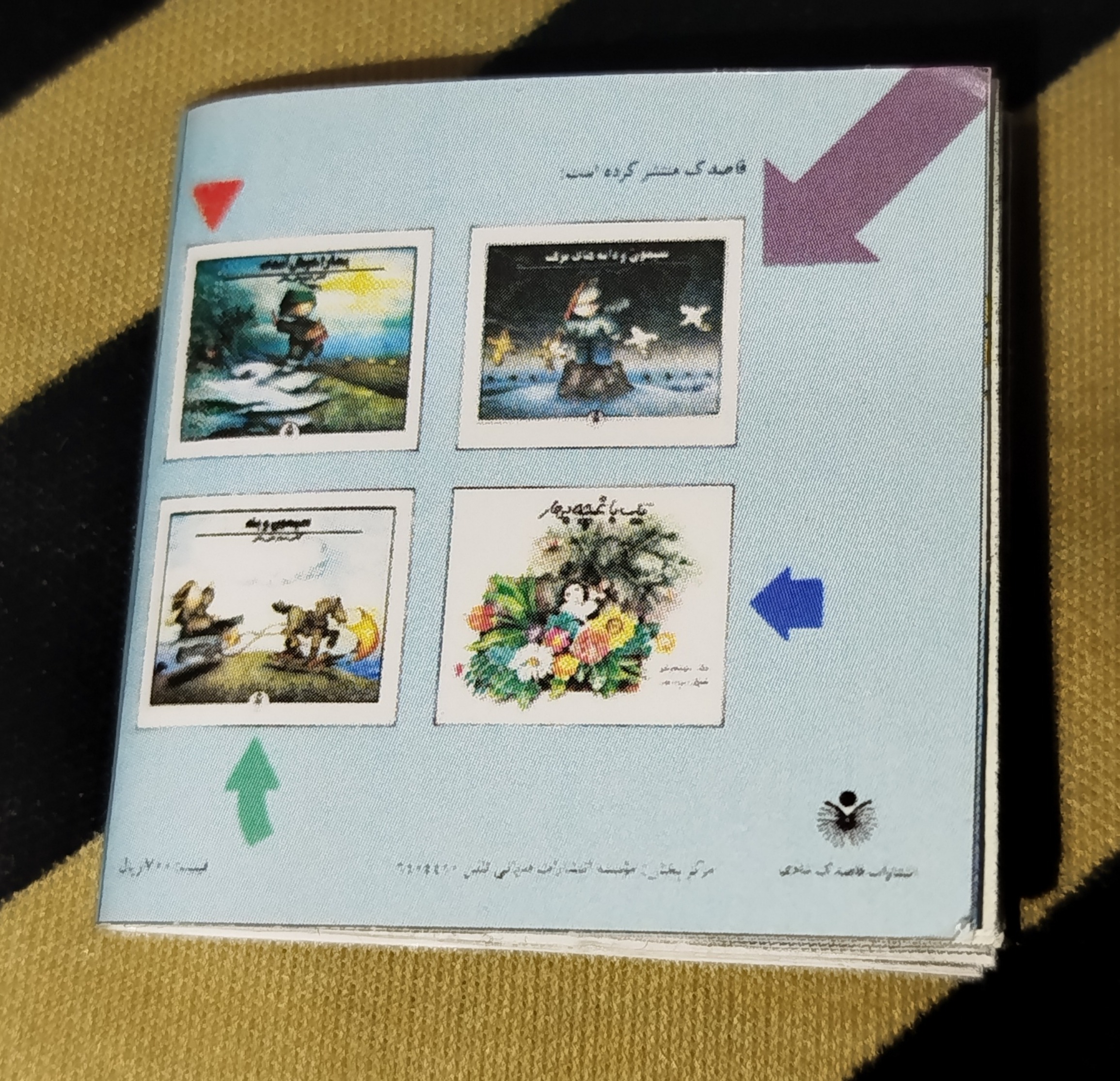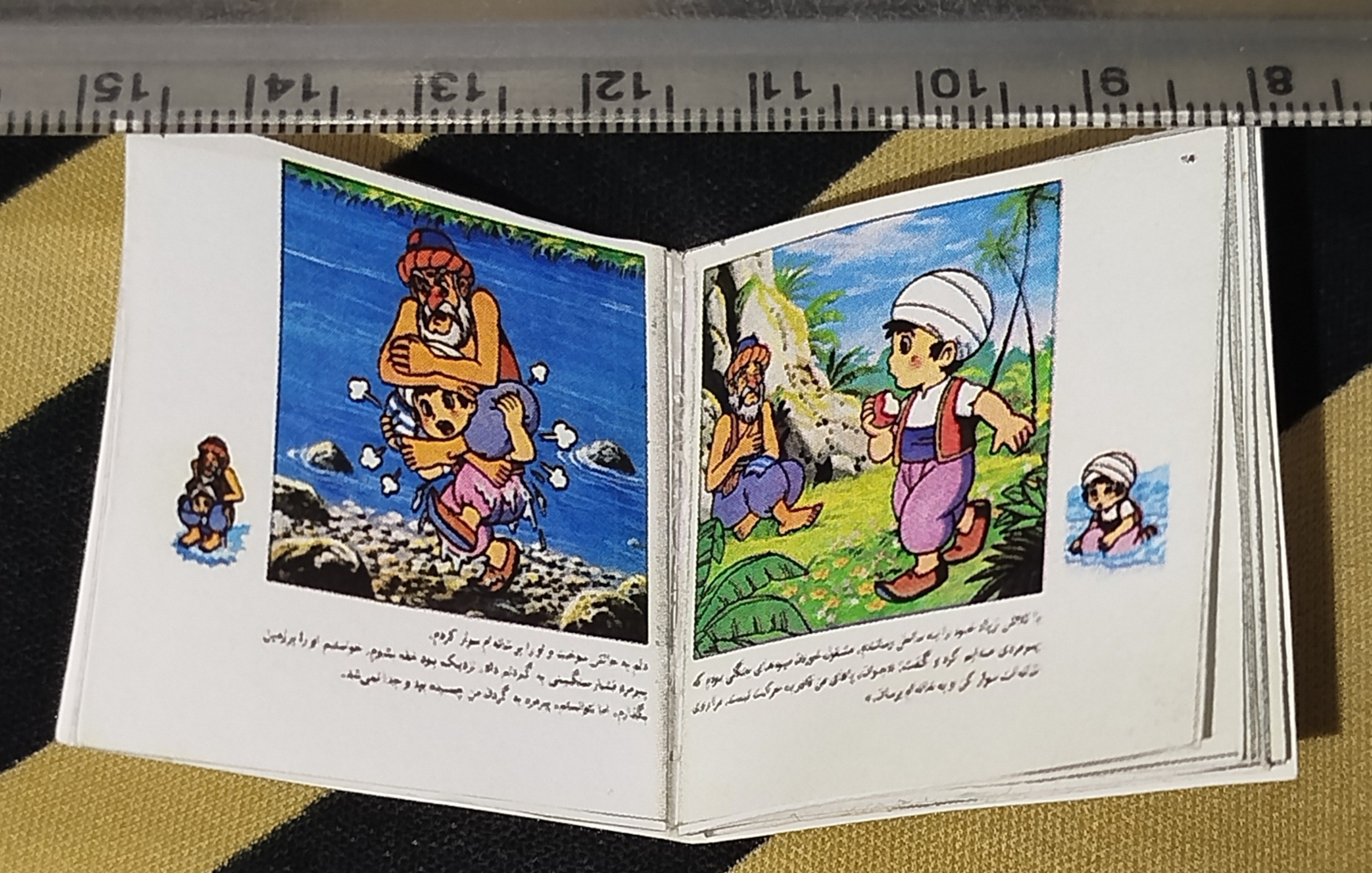 کتاب فانتزی ماجراهای سندباد،دست ساز و بسیار کمیاب و خاص جهت نگهداری در کلکسیون یا هدیه،توجه داشته باشید که ابعاد کالا بسیار کوچک و در حالت بازشده تقریبی پنج سانتیمتر است،به خط کش توجه فرمایید.کتاب چاپ غیر اصل است.