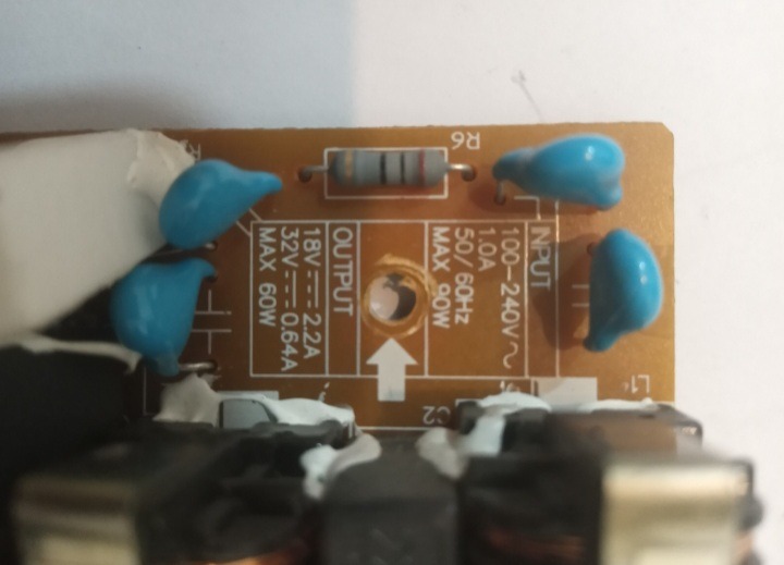 خروجی ولتاژ 18 ولت 2.2 آمپر و 32 ولت 640 میلی آمپر و با سوکت برق ورودی و کاملا سالم با جریان پایدار