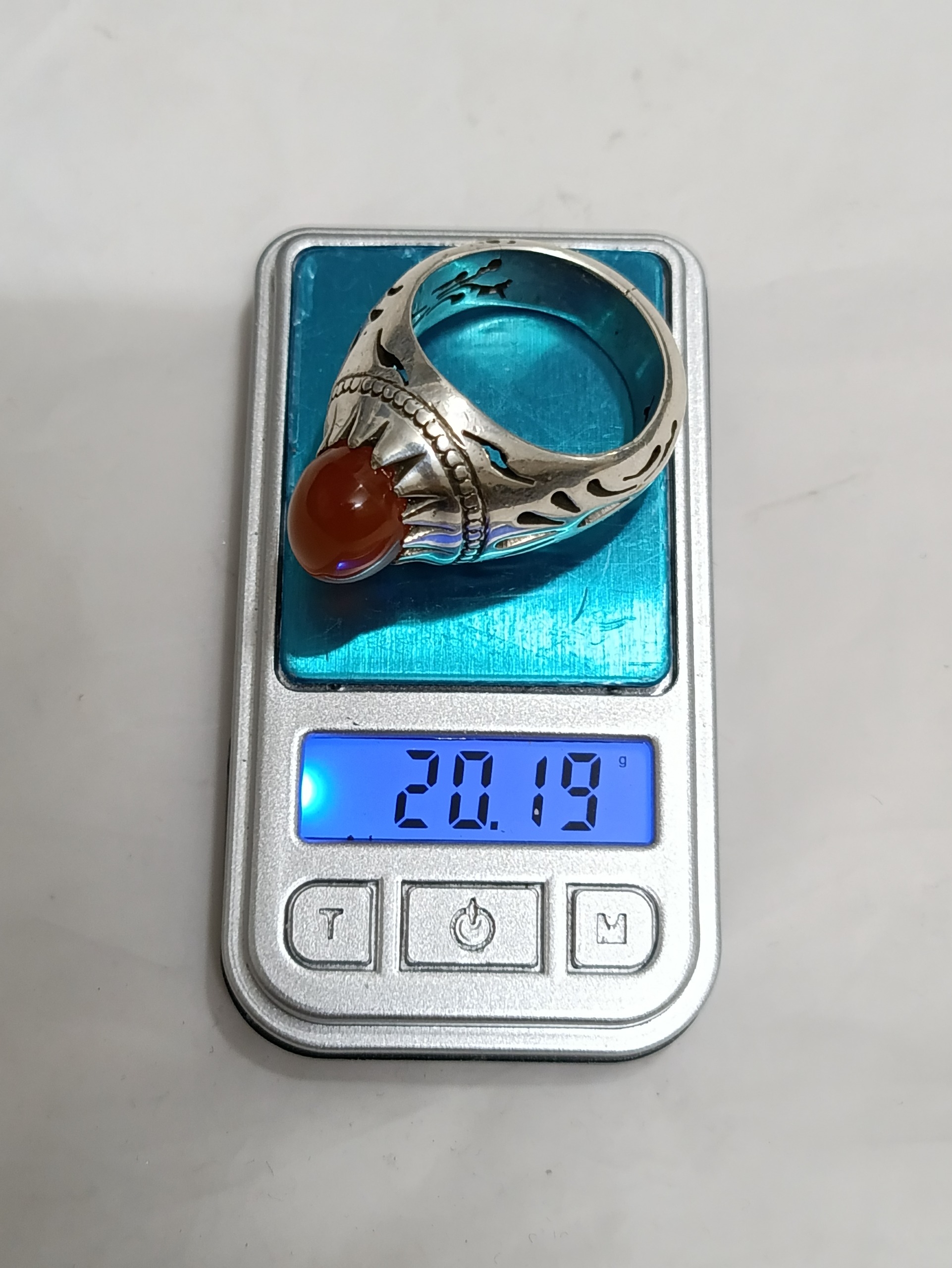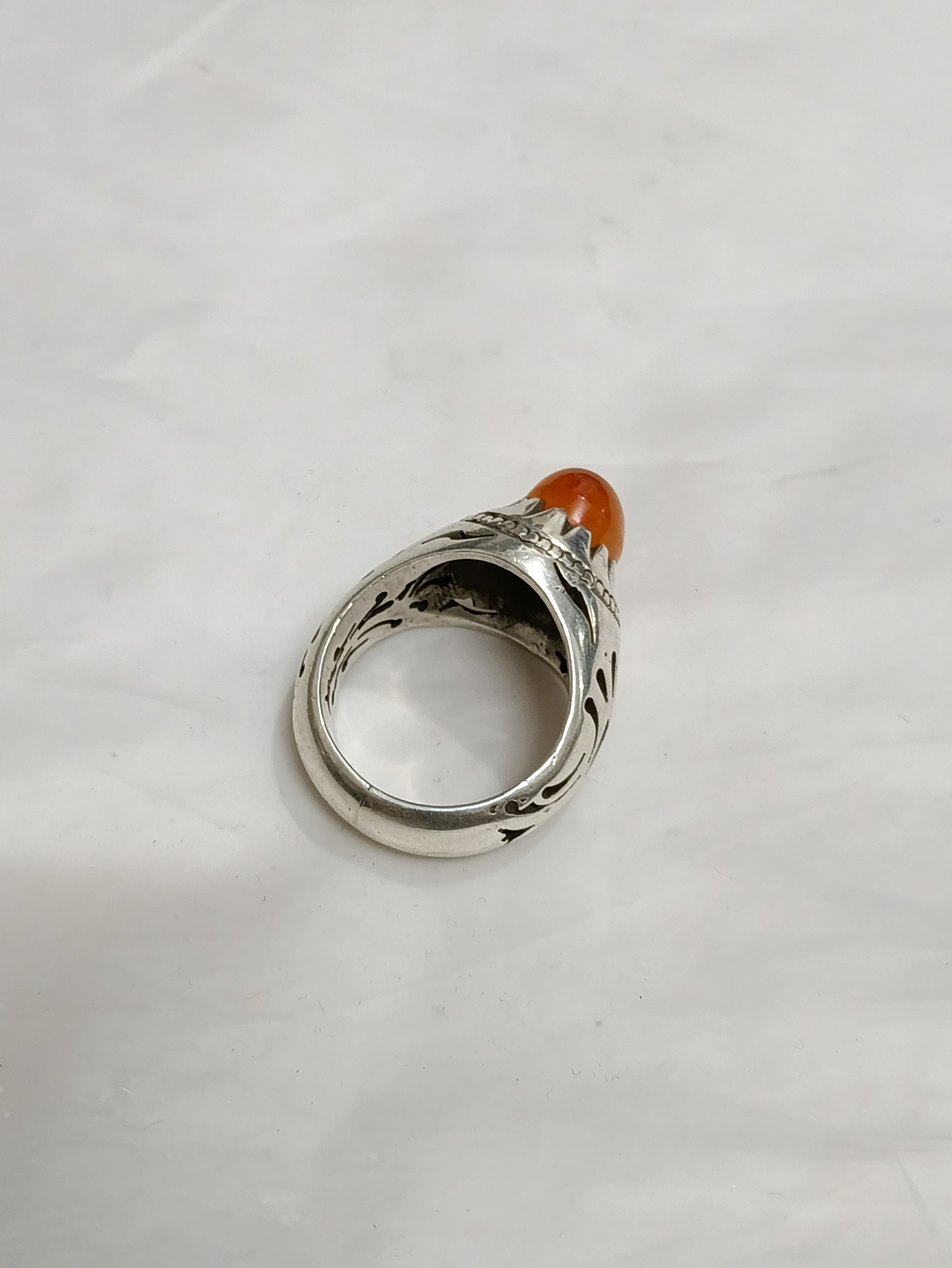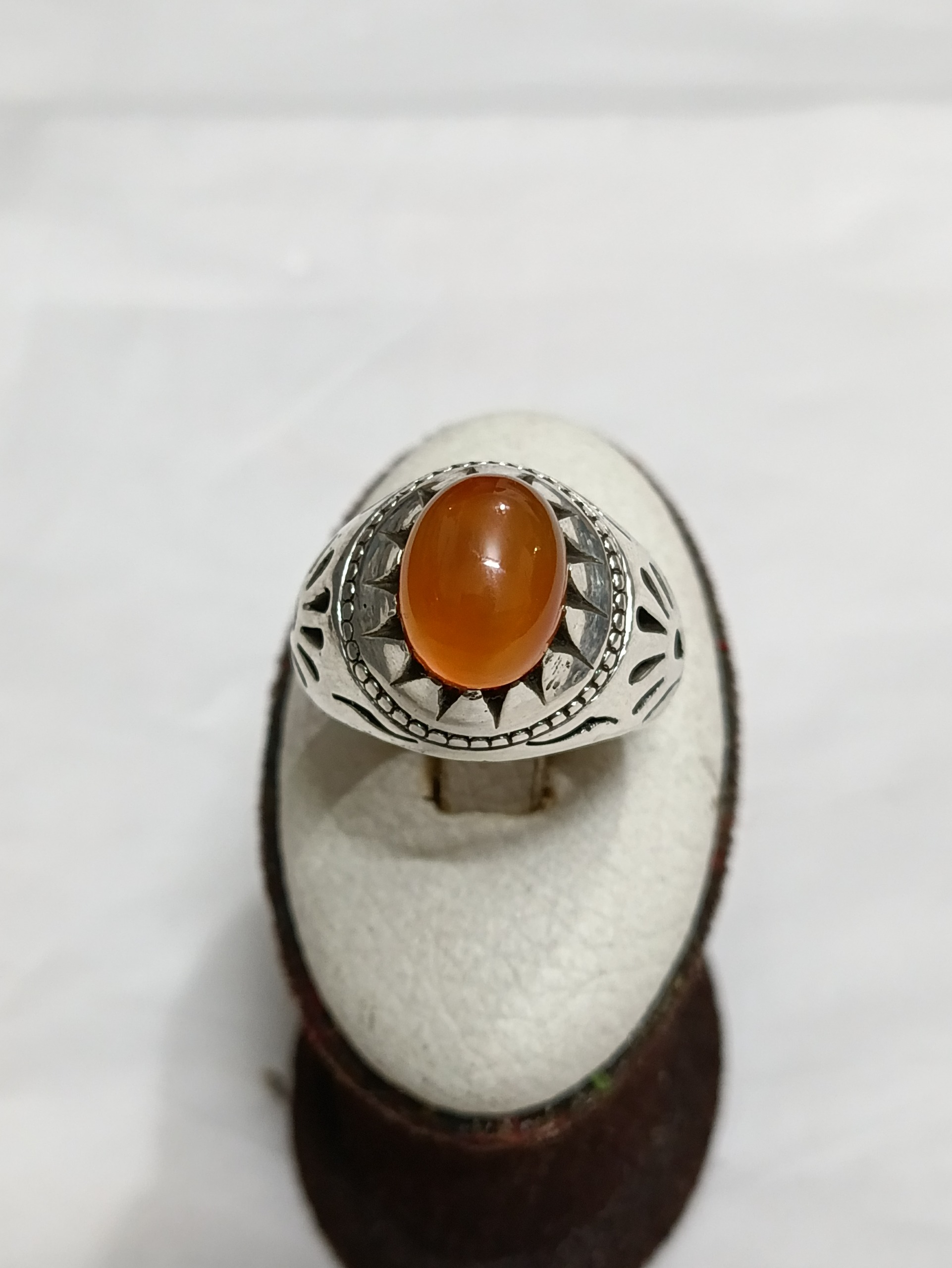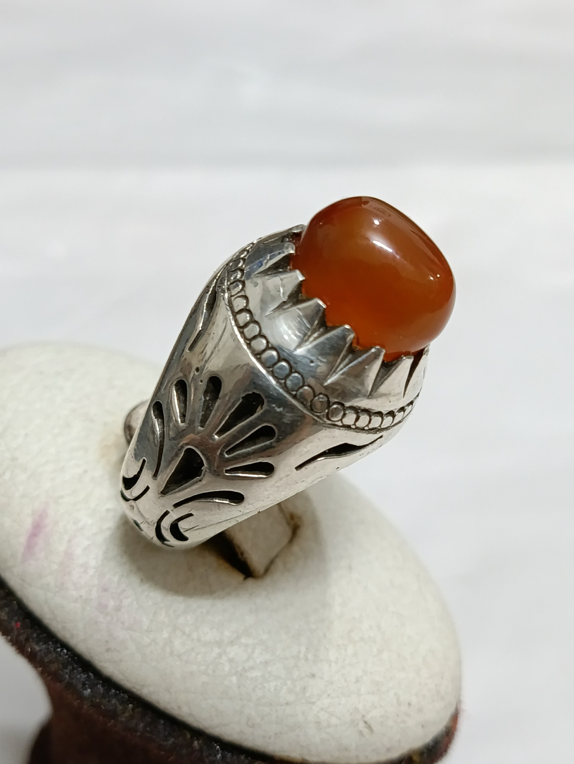 رکاب دست ساز نقره 925 شبکه کاری شده نگین عقیق یمنی آبدار