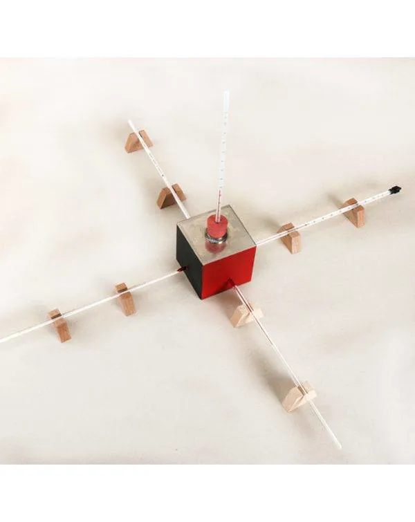 این مجموعه برای بیان مفهوم گسیل تابش استفاده می شود.از جنس پلاستک شفاف به ابعاد10×10×10سانتی متر به همراه 8 عدد پایه چوبی نگهدارنده دماسنج و درپوش پلاستیکی و 5 دماسنج الکلی میباشد.