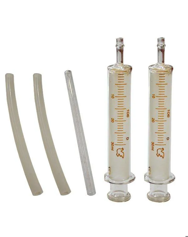دو شیلنگ سیلیکونی متناسب با دهانه لوله و سر سرنگ