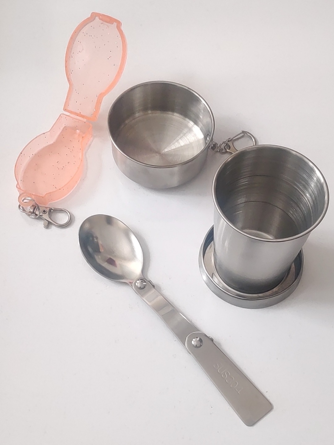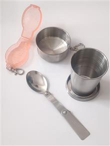 لیوان و قاشق تاشو مسافرتی از جنس استیل ( با کیفیت)