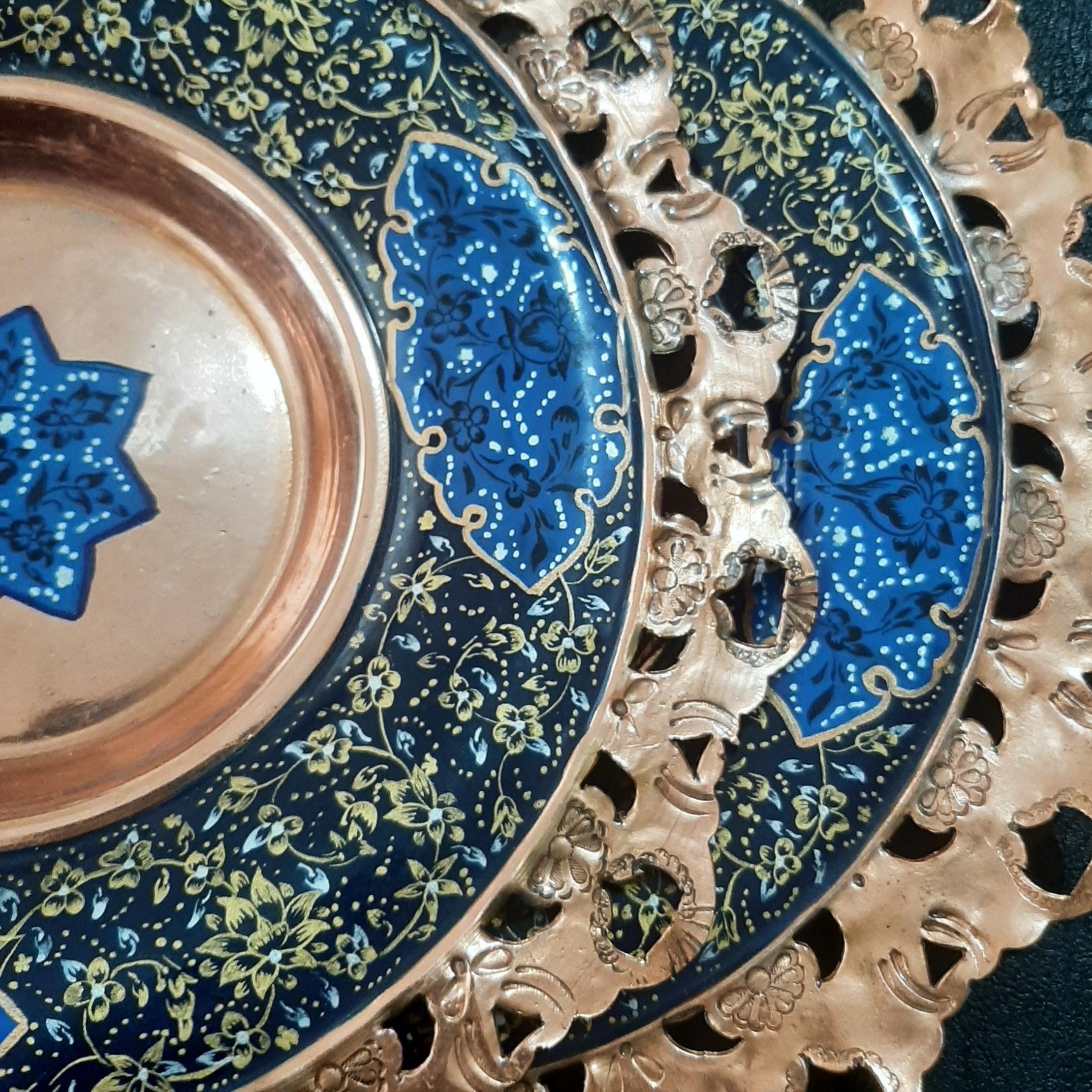 دو عدد بشقاب مس پرداز کلکسیونی، درجه یک