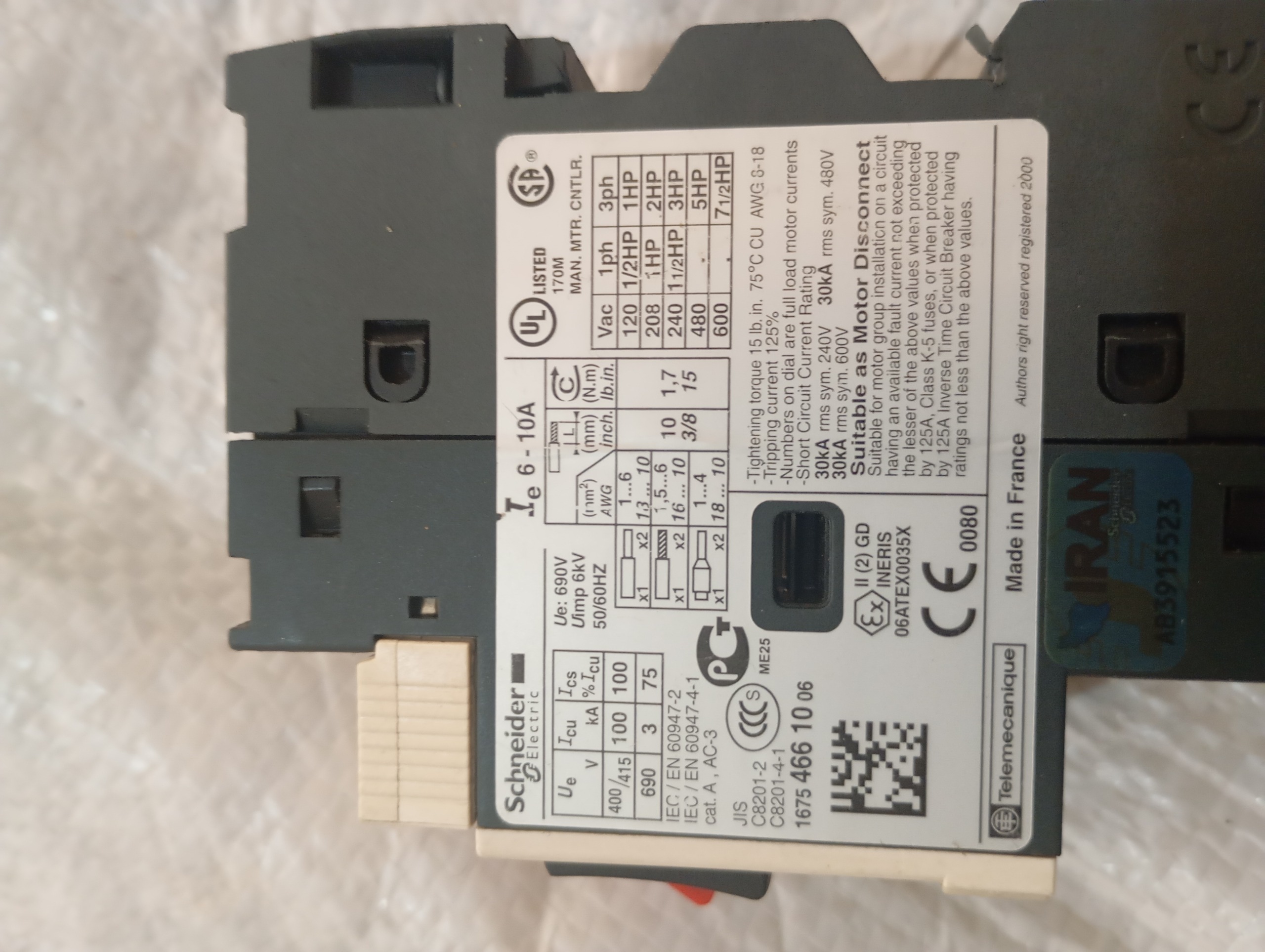 کلید حرارتی 6 تا 10 آمپر اشنایدر مدل Gv2ME14
