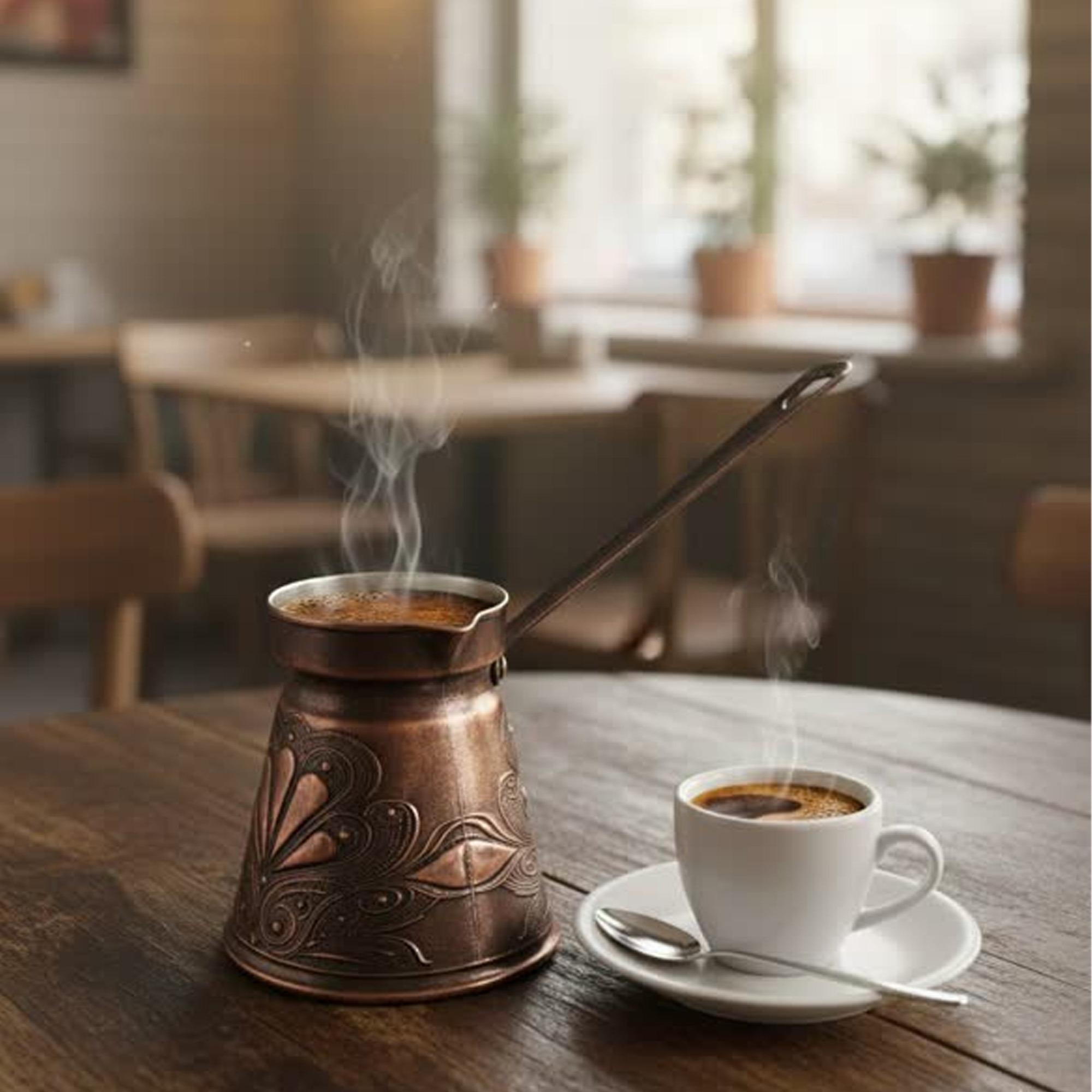 قهوه جوش چدنی داخل مس یکی از محصولات اصیل و با کیفیت صنایع دستی ترکیه است .