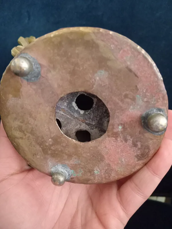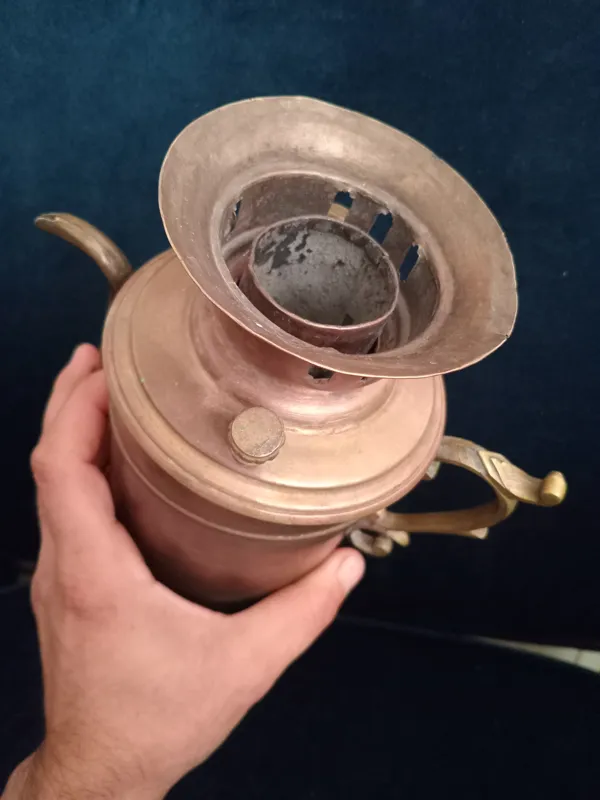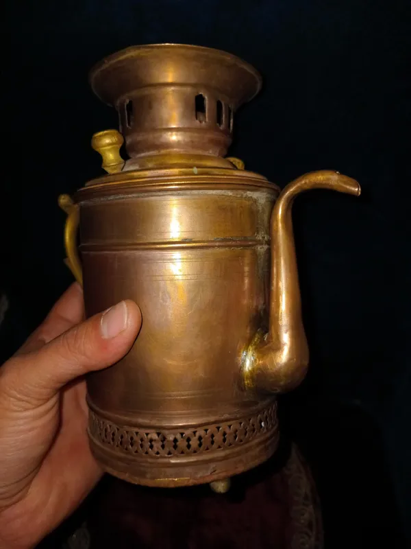 کتری شکاری بسیار زیبا کلکسیونی پاتویه دار عالی قابل استفاده و آببندی مشبک زیبا که طبق عکس آخر اندازه اندازه یک سانت شبکه ای پایین پارگی داره که نسبت به سنش واقعأ عیبه زیادی محسوب نمیشه.بسیار سنگین و جوندار.دکور عالی.بشرط قاجار بیایین بخرید