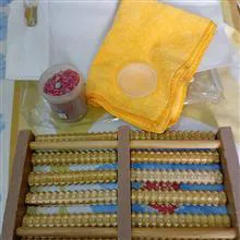 ماساژور پا ساخته شده از چوب بامبو طبیعی روی چوب جلا خورده