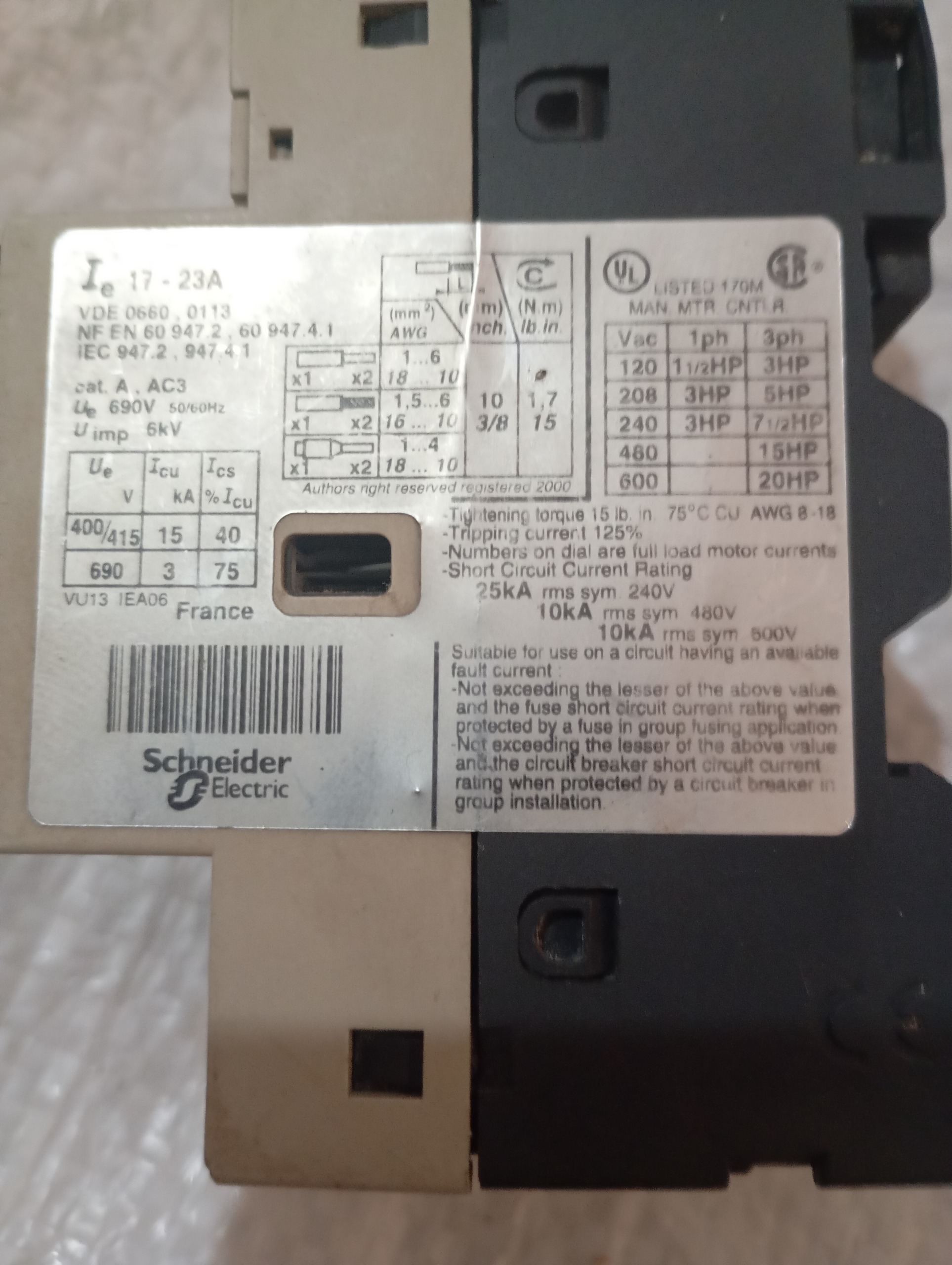 کلاس مصرف: AC3 (موتورهای آسنکرون)