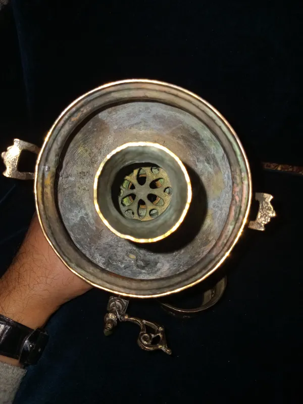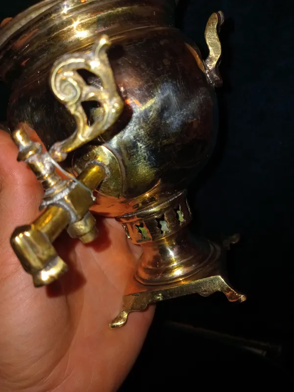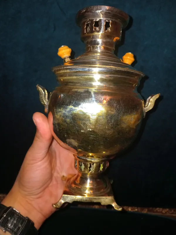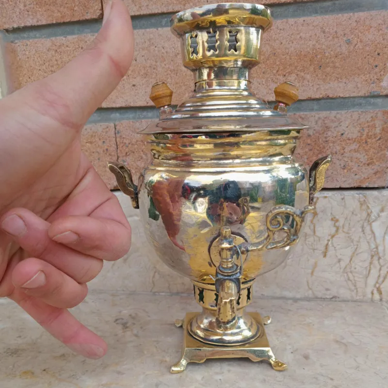 سماور خوشگله یک وجبی کهنه 100 ساله همه چیز فابریک بدونه شکستگی و لحیم کاری سایز کلکسیونی کمیاب طبق عکس تقدیم میشه.کار عالیه بیایین بخرید بشرط قدمت بالایه 100 سال.نرید بخرید 7 تومن