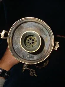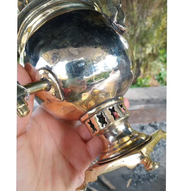 سماور ذغالی توپی برنجی کهنه پهلوی اول سایز کمیاب