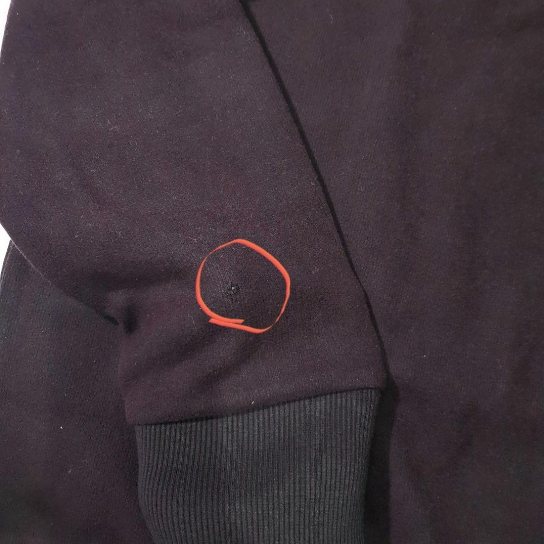 یه مورد طبق عکسه اخر روی آستینه سمته راست نزدیکه ساعد داخله بار سوراخ ریز خورده که خیلی هم تو چشم نیست