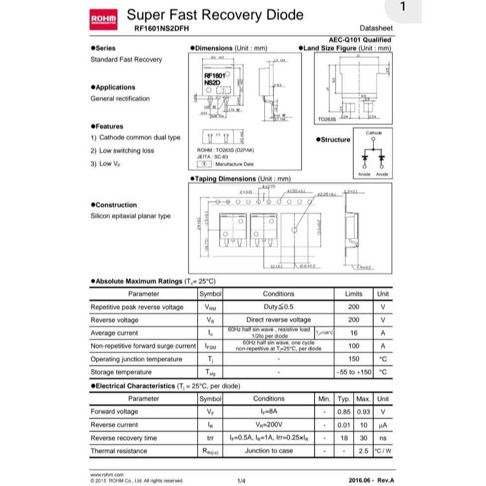 دیود دوبل شاتکی 200V/16A RF1601 اوریجینال ROHS