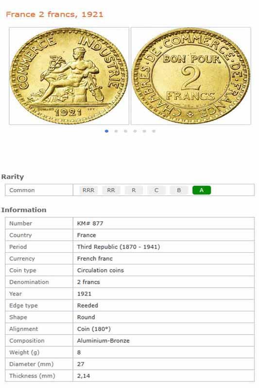 سکه 2 فرانک فرانسه 1921 (نایاب)