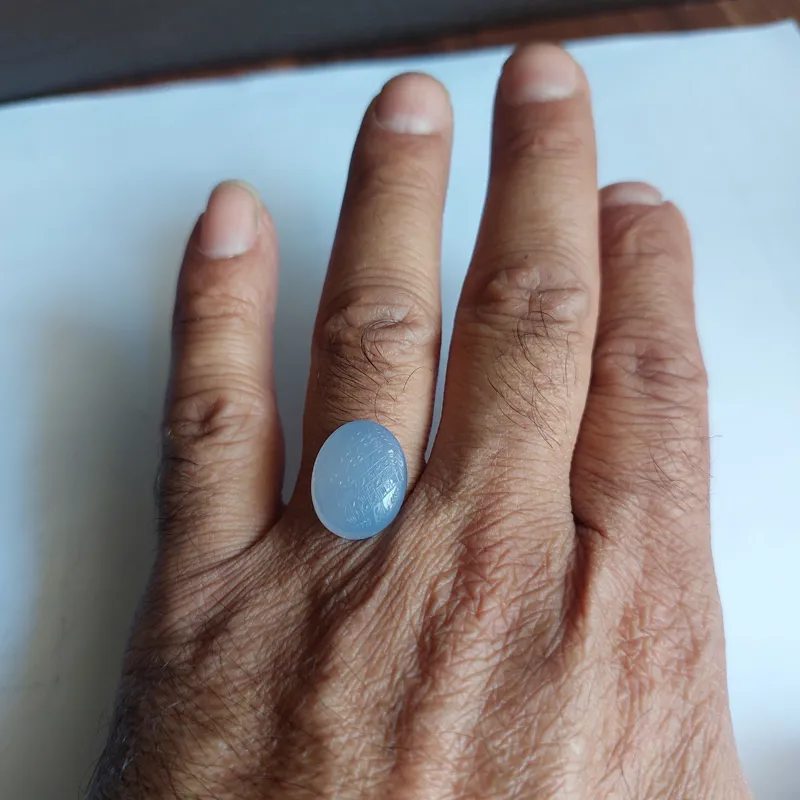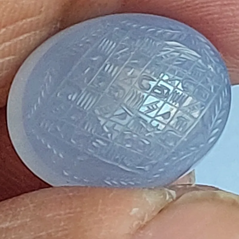 نگین عقیق یمنی کبود  خوش رنگ و آبدار درجه یک منقش به هفت لوح شرف به خط و امضاءاستاد ضابطی