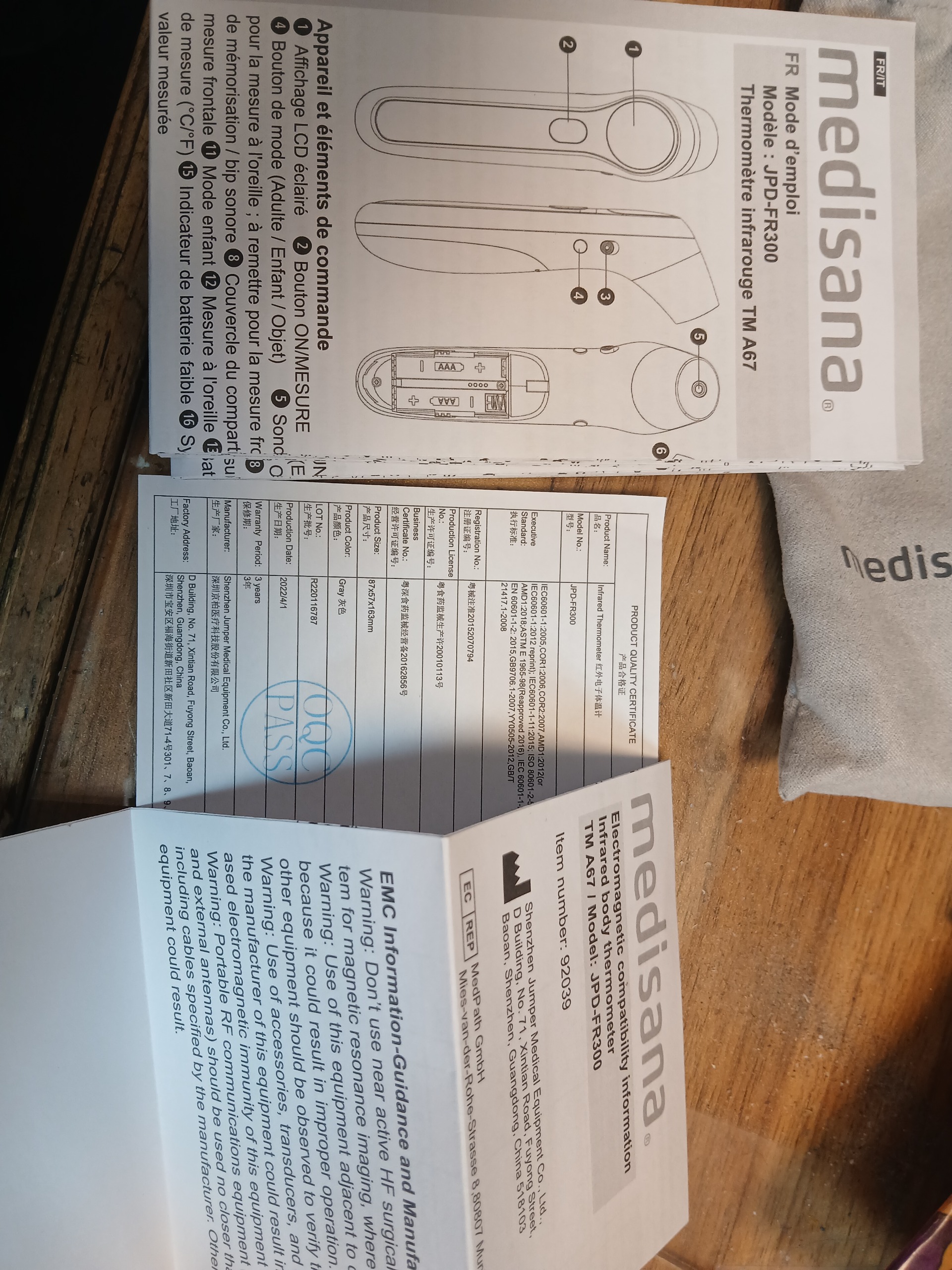 تب سنج (دماسنج) دیجیتالی گوش و پیشانی | مادون قرمز Medisana | A67 JPD-FR300