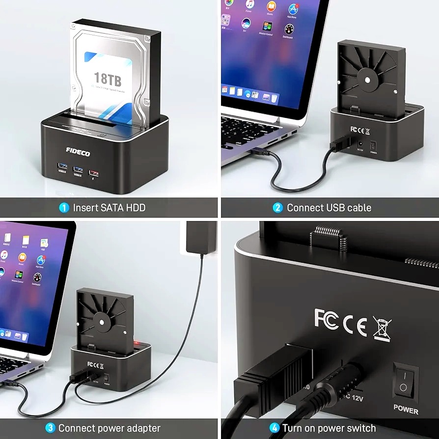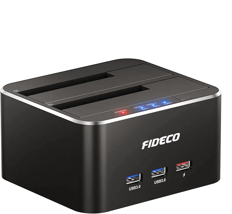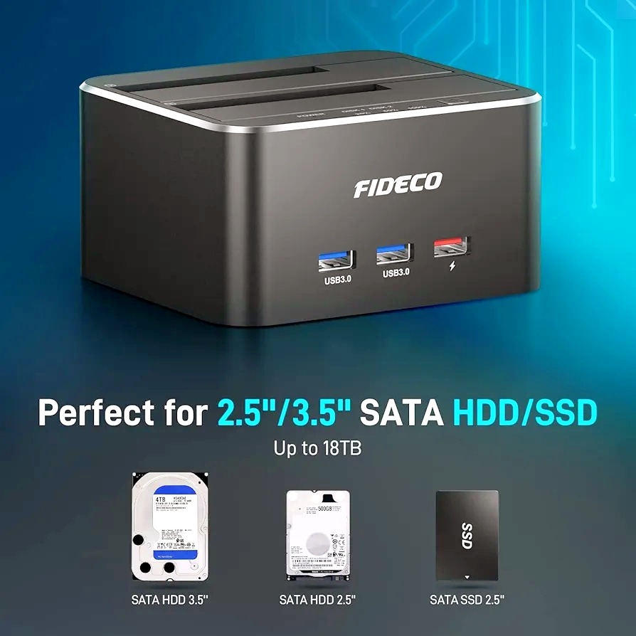 - داک هارد دیسک FIDECO میتواند از تمام هارد دیسکها/اساسدیهای SATA I/II/III با اندازه 2.5/3.5 اینچ پشتیبانی کند.