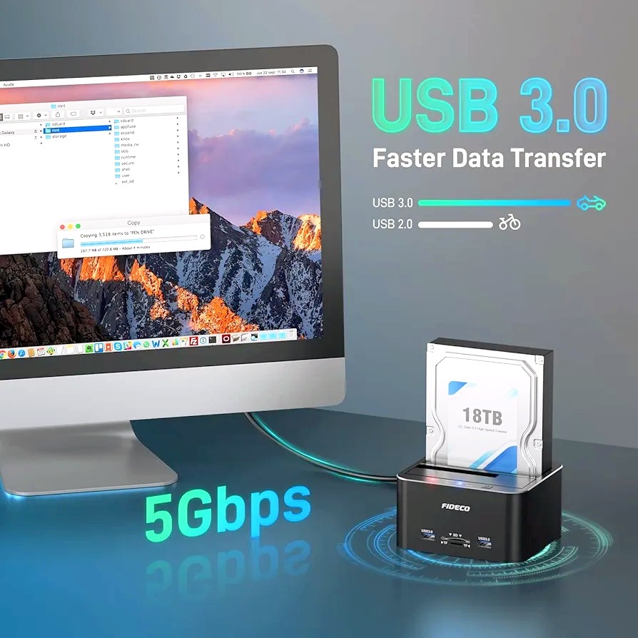 داک هارد دیسک FIDECO میتواند به شما کمک کند تا با اتصال آن به کامپیوتر خود، به راحتی به هارد دیسک یا SSD SATA خود دسترسی داشته باشید. همچنین میتوان از آن به عنوان یک دستگاه ذخیرهسازی خارجی برای افزایش فضای ذخیرهسازی برای کامپیوترهای رومیزی یا لپتاپهای خود استفاده کرد.
