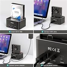 • مطلقاً هیچ مرحله عملیاتی پیچیدهای وجود ندارد! فقط SATA HDD/SSD خود را وارد کنید، کابل USB و آداپتور برق را به ترتیب وصل کنید و سپس کلید پاور را روشن کنید.