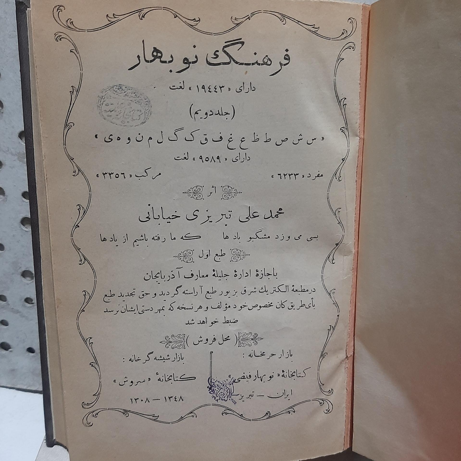 فرهنگ نو بهار - جلد دوم - اثر محمد علی تبریزی خیابانی - چاپ اول - بدون درج ناشر احتمالا نشر مولف - چاپ 1348 ش - رقعی - گالینگور - 435 ص